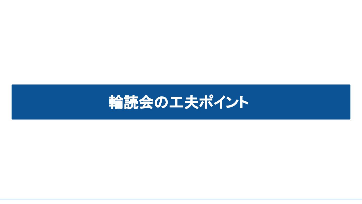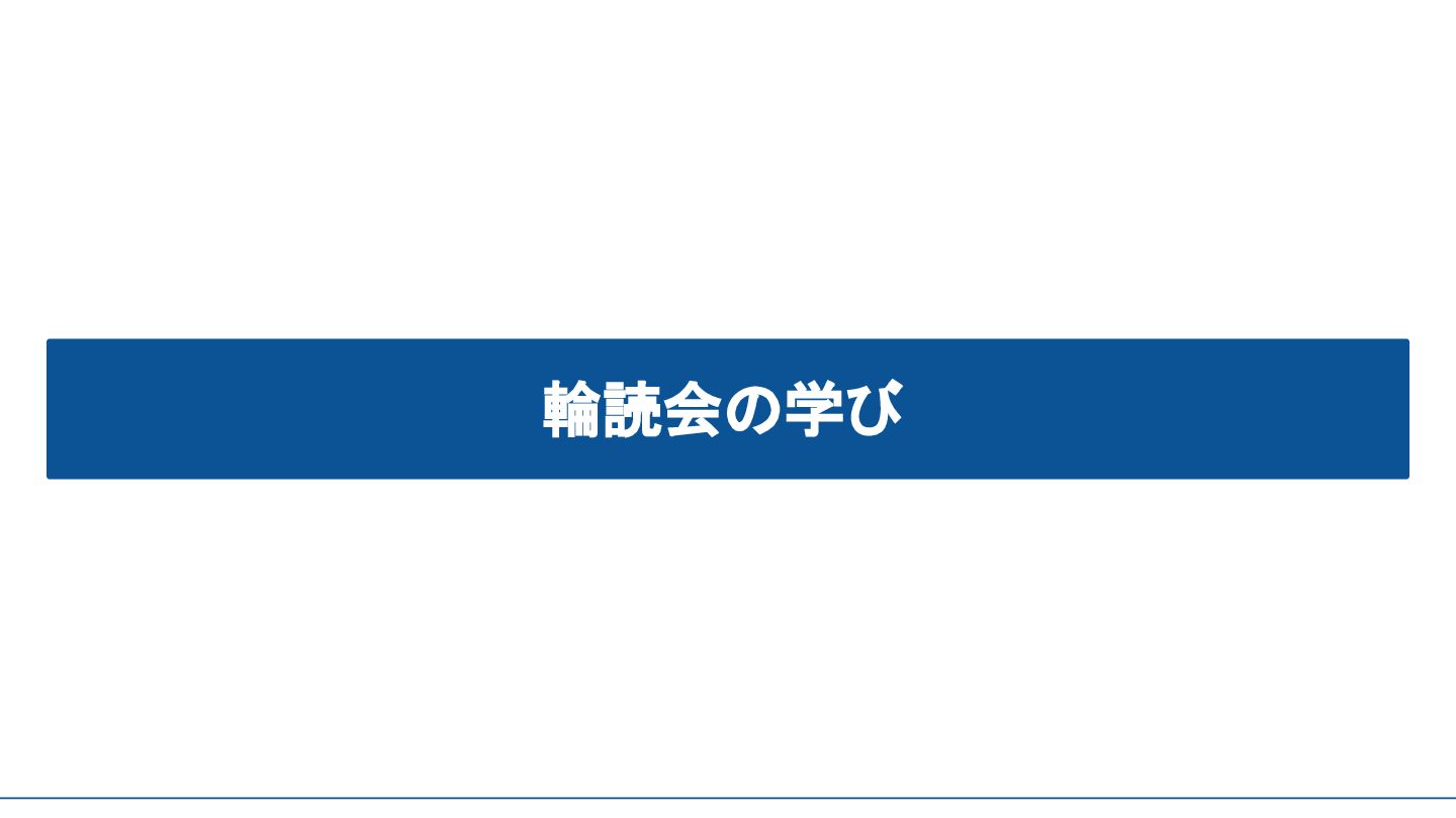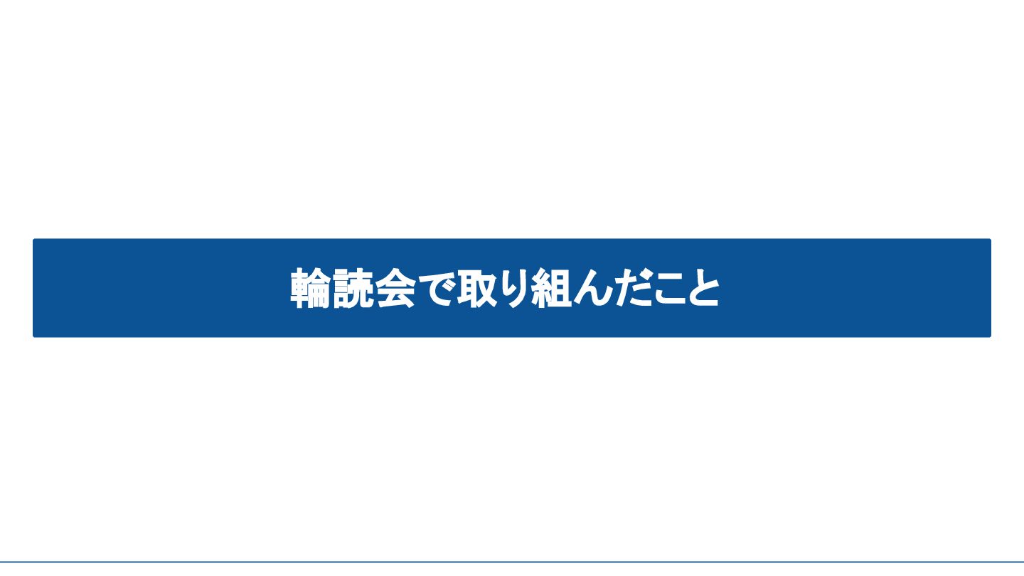せて8~10人前後 • 期間 ◦ 週1に1時間、8ヶ月ぐらい • 形式 ◦ 6ヶ月間の輪読会と、最後の2ヶ月はワーク ショップを実施