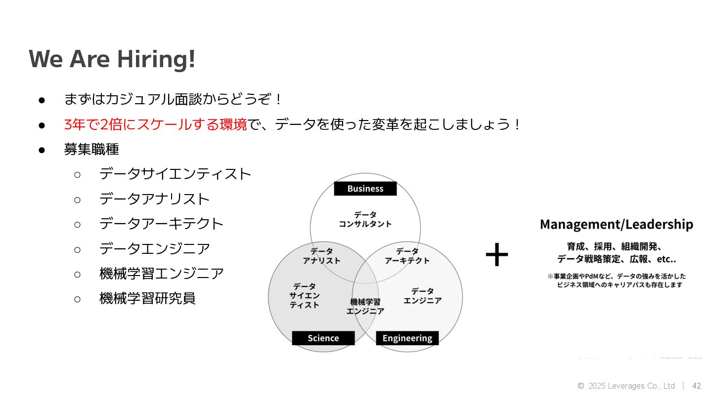 42 © 2025 Leverages Co., Ltd. We Are Hiring! •