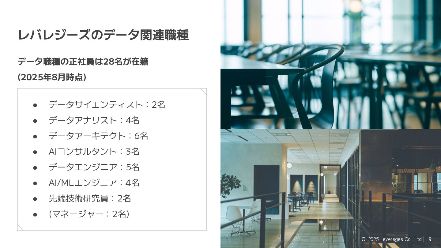 9 © 2025 Leverages Co., Ltd. • データサイエンティスト:2名 • データアナリスト:4名