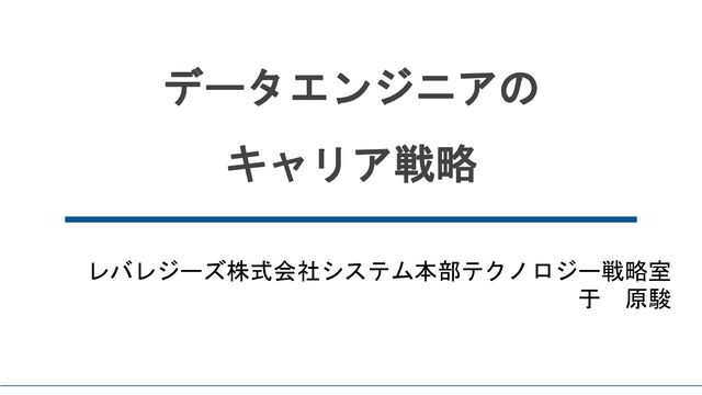 データエンジニアの キャリア戦略 レバレジーズ株式会社システム本部テクノロジー戦略室 于 原駿 1