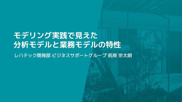 # モデリングの実践と苦悩 〜かとじゅんさんと探る成功の鍵〜 18:50 「モデリング実践で見えた分析モデルと業務モデルの特性」 前原 宗太朗(レバテック株式会社)