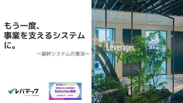 「レバテック×イオン ~事業会社を支える開発組織のBizDevOps戦略~」での登壇スライドです。 https://aeon.connpass.com/event/332473/
