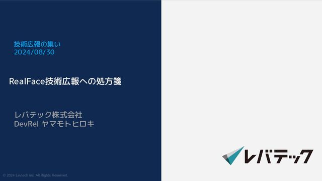 © 2024 Levtech Inc All Rights Reserved. RealFace技術広報への処方箋 技術広報の集い 2024/08/30