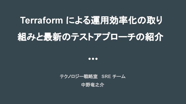 では、移行コストと改善 効果性のバランスを考え、 Terraform への移行を検討する。 Terraform によるサポート が弱い部分への IaC 化 Terraform へのサポートが未対応、またはサポート範囲が狭い部分では 他ツールの利用を認める。 外部サービスの仕組みにお ける Terraform の導入 パブリッククラウドや SaaS で提供される仕組みにおいて、 Terraform 以 外の手段で構築されている場合は、その手段の利用を認める。 一時的な利用のシステムへ の Terraform の導入 プロトタイプや実験的な環境等の、一時的な利用が確実に見込まれる様 なシステムでは、 Terraform による IaC 化は強制しない。