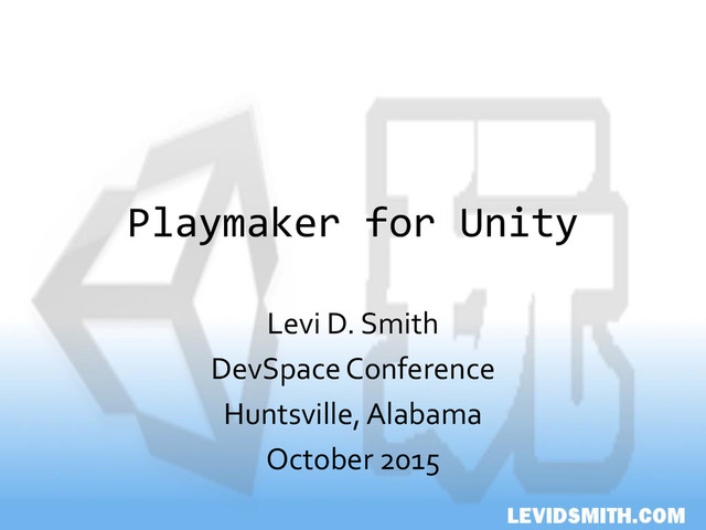 Playmaker for Unity Levi D. Smith DevSpace Conference Huntsville, Alabama