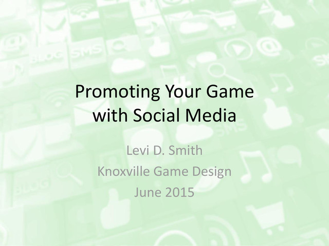 In this presentation, we will cover how to use various social media outlets to promote a game to reach your customer base. Topics covered include Twitter, YouTube, WordPress, Yoast SEO plugin, Reddit, Social Media Cards, Google Alerts, Google Analytics, Google Webmaster Tools and more!