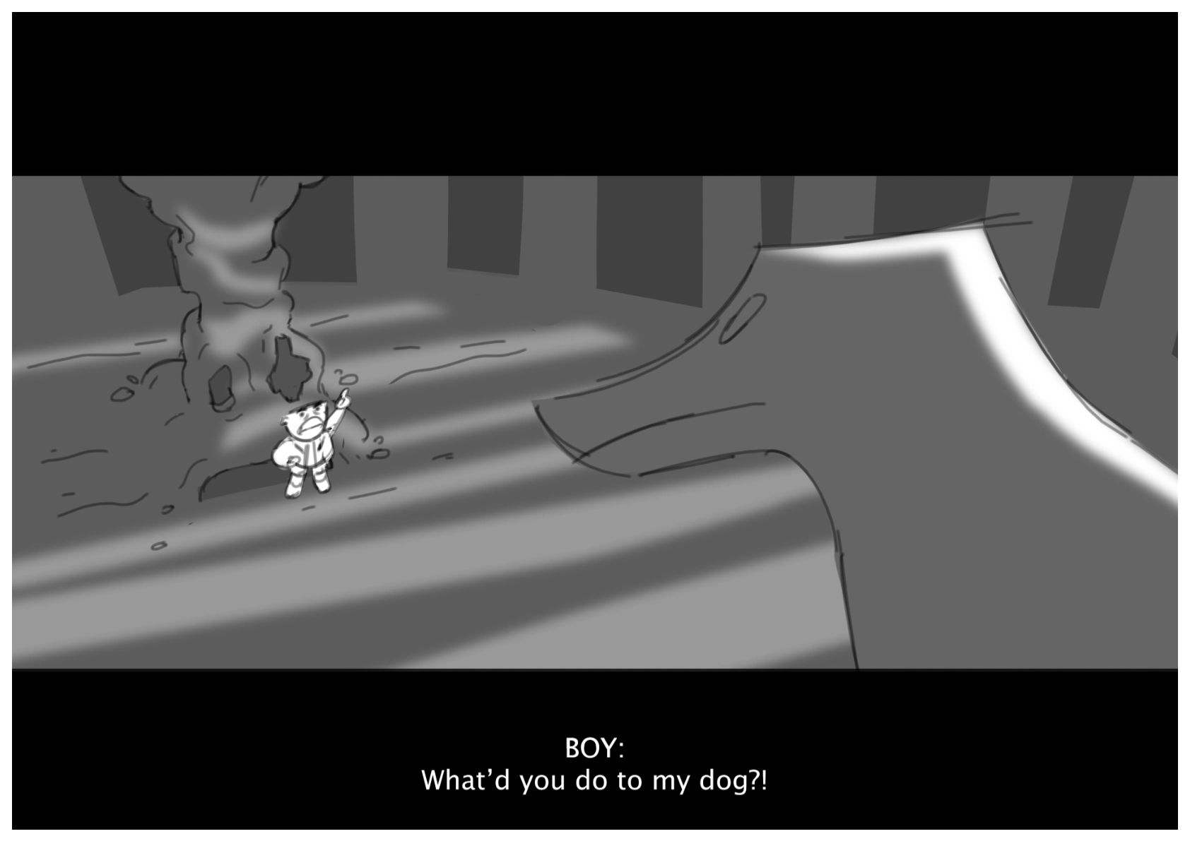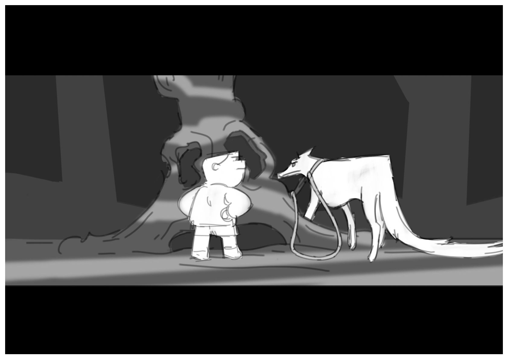This is a scene from a short film project that's still in the works! "For A Walk" follows a young boy and his dog as they attempt to hunt down a mysterious creature that's been terrorising the local neighbourhood. Unbeknownst to the boy, the creature he's hunting is in fact his own dog - a shapeshifting monster with an insatiable hunger...
