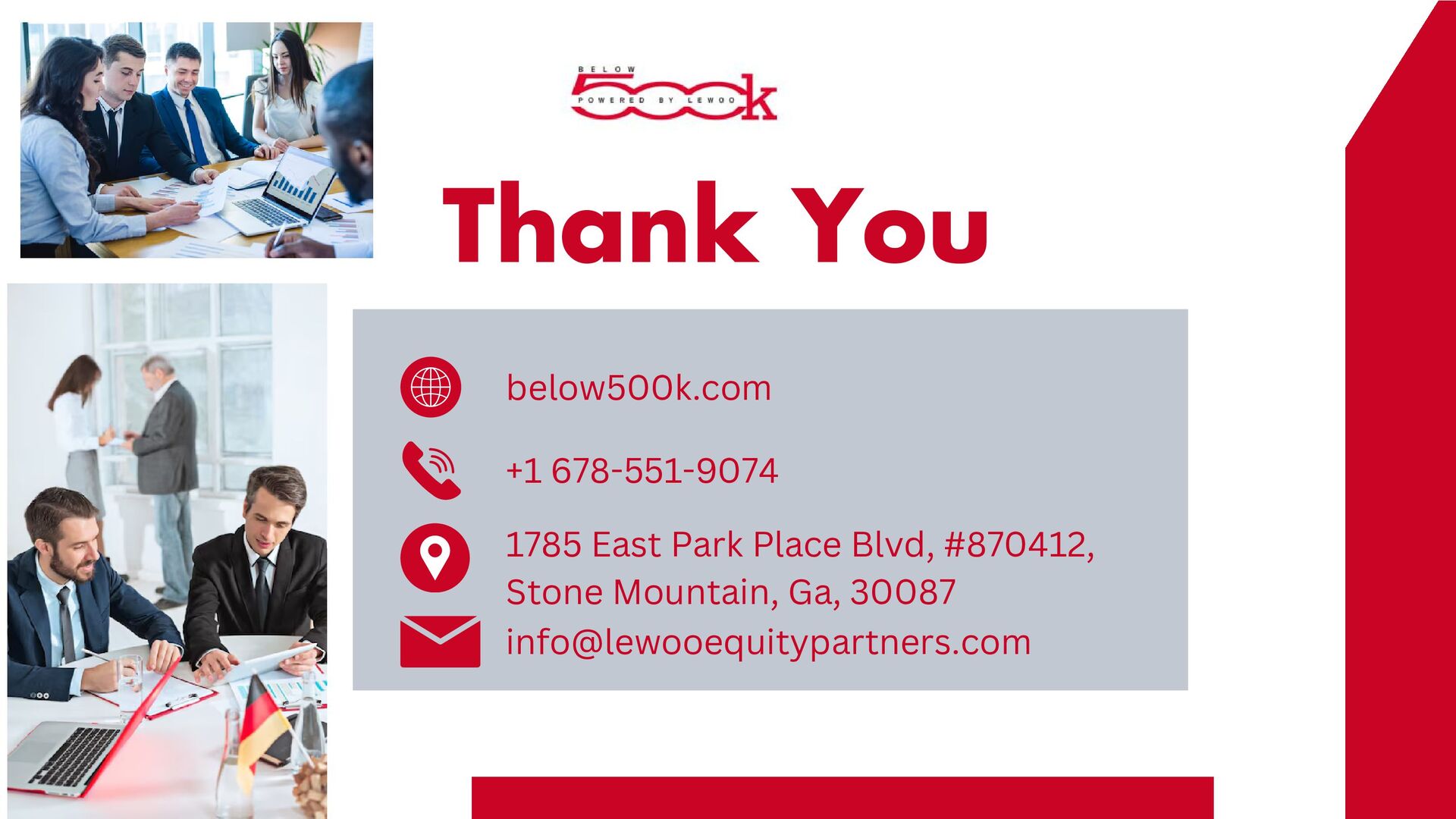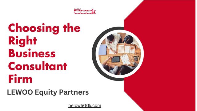 Selecting the right business consultant firm is essential for achieving your company's strategic goals and driving growth. At LEWOO Equity Partners, we understand the importance of finding a consultant who can deliver tailored insights and actionable solutions. Our firm stands out due to our extensive industry experience, proven track record, and commitment to aligning with your unique business needs. Choosing LEWOO Equity Partners means partnering with a trusted advisor dedicated to your business's success. Visit : https://below500k.com/