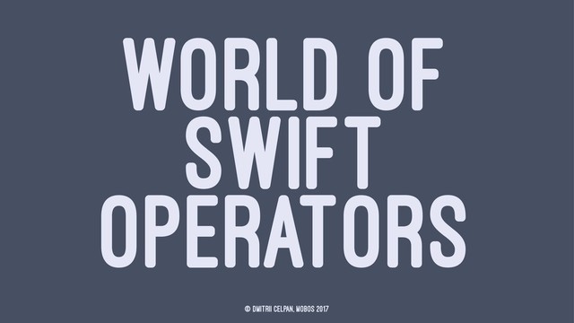 This is all about how to work with operators in Swift, how to declare custom ones and the main thing, that we don’t have to be afraid to see them and to use them.