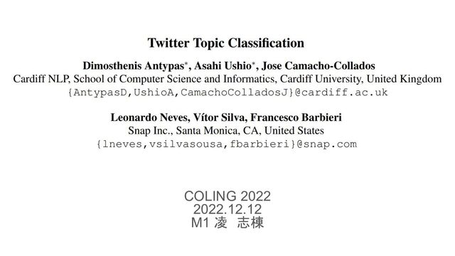 #GoogleDoodle” or “Gifts of love are the ingredients of a #MerryChristmas Give your loved ones a physical/virtual crypto gift card within the {{USERNAME}} app ◦ 宗教・文化関連だが、宗教活動は日常生活でもある ◦ データセットの分類は完璧ではない • science & technologyの40%を誤って判断 Bill Gates-Funded Company Releases Genetically Modified Mosquitoes in US ◦ business & entrepreneursと誤分類 • Multi-label分類ではcelebrity & pop cultureの誤りが 多い ◦ モデルは言及された人が有名人かどうかは知らない