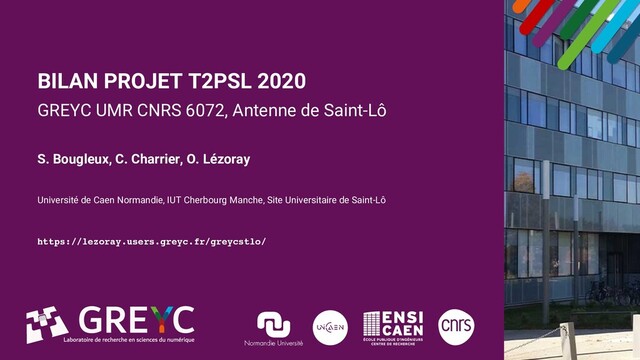 T2PSL 2020 GREYC UMR CNRS 6072, Antenne de Saint-Lô S. Bougleux, C. Charrier, O. Lézoray Université de Caen Normandie, IUT Cherbourg Manche, Site Universitaire de Saint-Lô https://lezoray.users.greyc.fr/greycstlo/