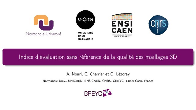 Résultats Conclusion Résultats Setup expérimental Apprentissage : base Liris-Masking 4 maillages 3D de référence, bruit additif, trois degrés d’intensités sur différentes régions du maillage. 22 maillages dégradés de chaque maillage, 12 observateurs humains, MOS Test : base Liris/Epfl General-Purpose 4 maillages 3D de référence, deux types de distorsions (bruit additif et lissage), trois degrés d’intensités sur différentes régions régions lisses ou rugueuses. 6 maillages dégradés de chaque maillage, 12 observateurs humains, MOS MOSgauche=0.1, MOSdroite=1.0 MOSgauche=0.75, MOSdroite=1.0 A. Nouri, C. Charrier et O. Lézoray (GREYC) Journée GdR-ISIS – 29 novembre 2019 27 / 34