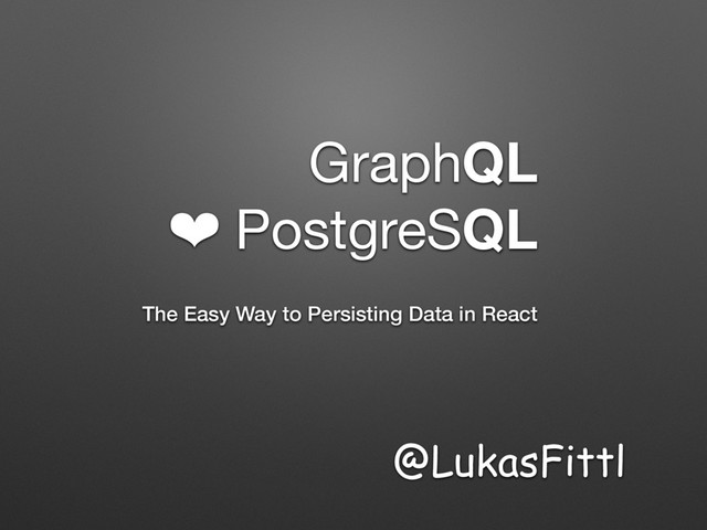 GraphQL ❤ PostgreSQL The Easy Way to Persisting Data in