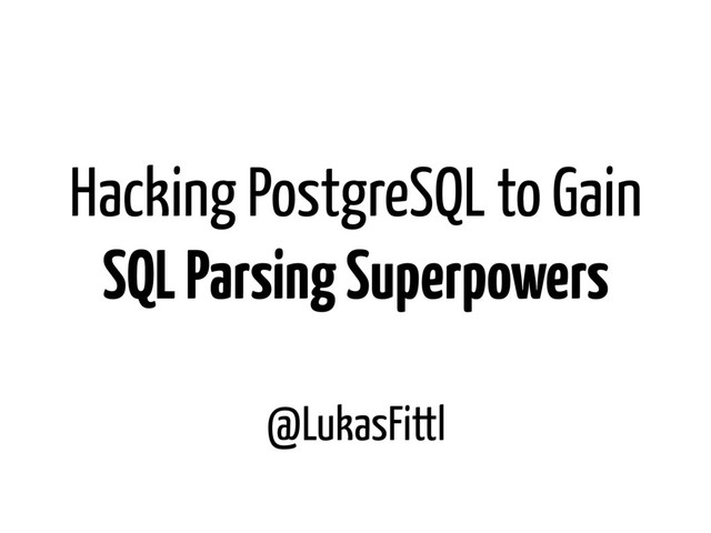 @LukasFittl Hacking PostgreSQL to Gain SQL Parsing Superpowers @LukasFittl