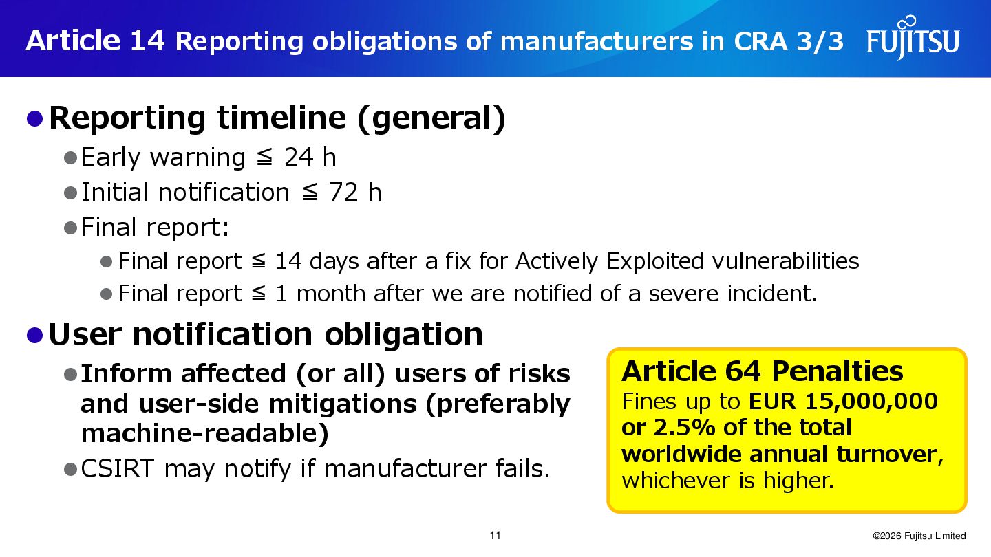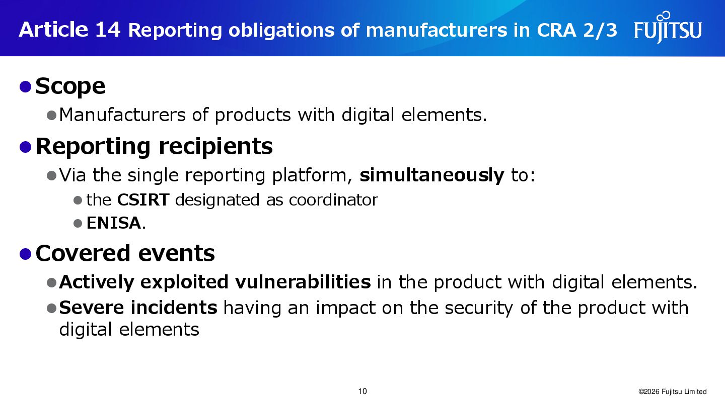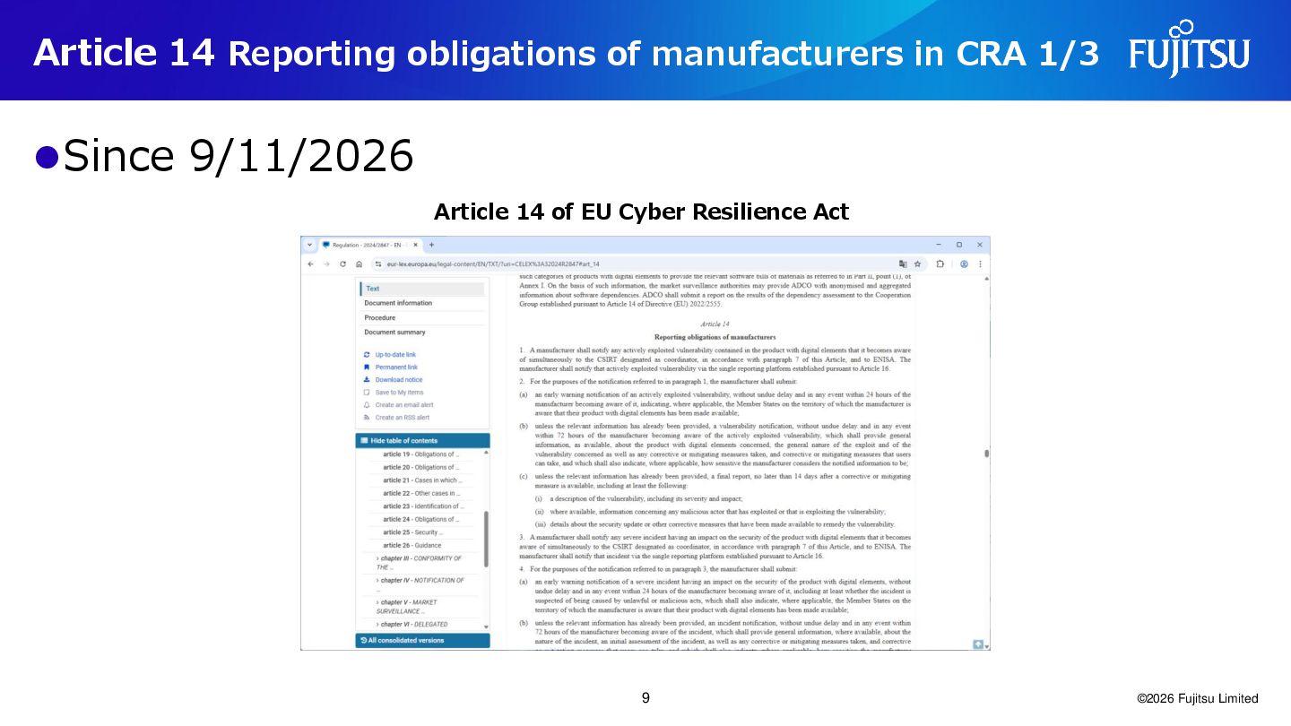 9/11/2026 Article 14 of EU Cyber Resilience Act ©2026 Fujitsu Limited 9
