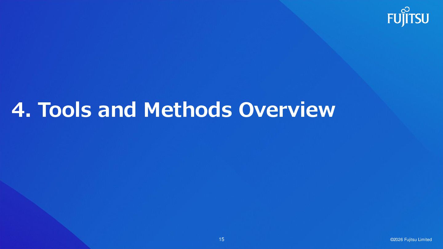 4. Tools and Methods Overview 5. Evaluation of Tools and Methods 6. Conclusions ©2026 Fujitsu Limited 6