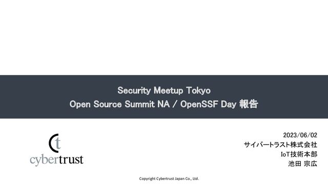 Summit NA / OpenSSF Day 報告 2023/06/02 サイバートラスト株式会社 IoT技術本部 池田 宗広