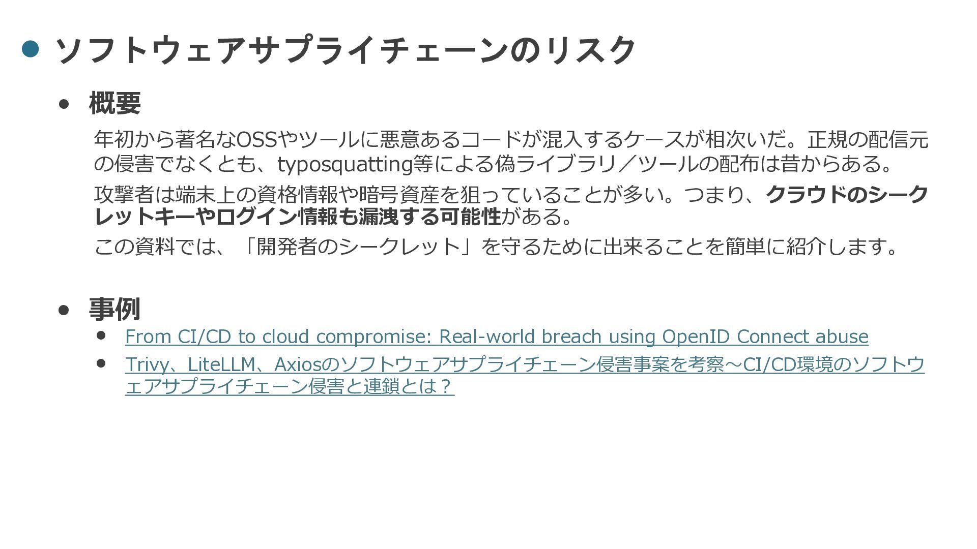 CloudSec JP #005 後締め ~ソフトウェアサプライチェーン攻撃から開発者のシークレットを守る~