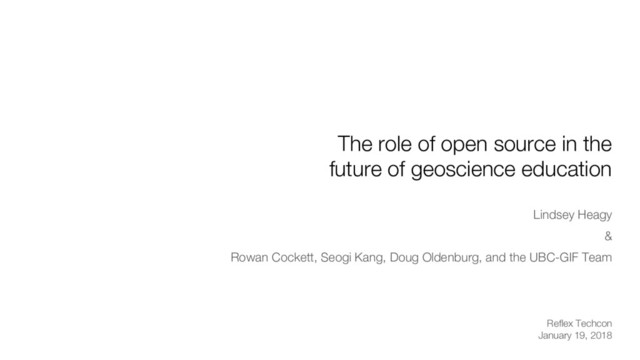 We discuss the role of open source practices, including versioning, collaboration and reproducibility in the future of geoscience education. Presented at the 2018 Reflex TechCon (http://reflexnow.com/tech-con-2018/)