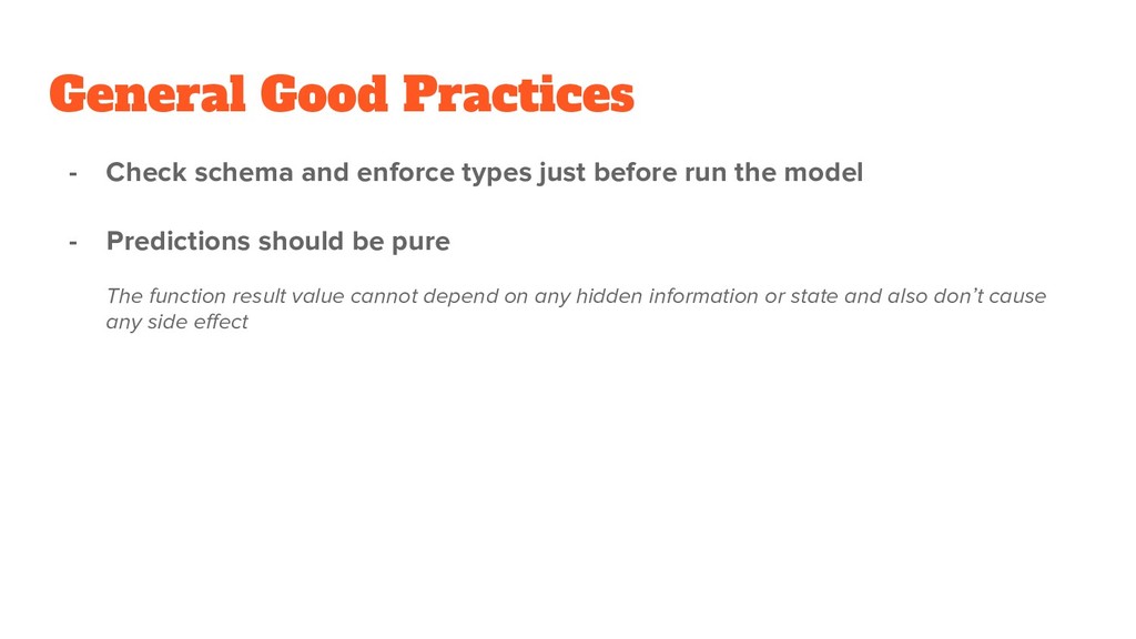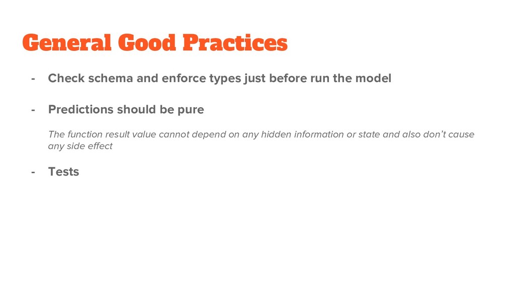 before run the model - Predictions should be pure The function result value cannot depend on any hidden information or state and also don’t cause any side effect - Tests
