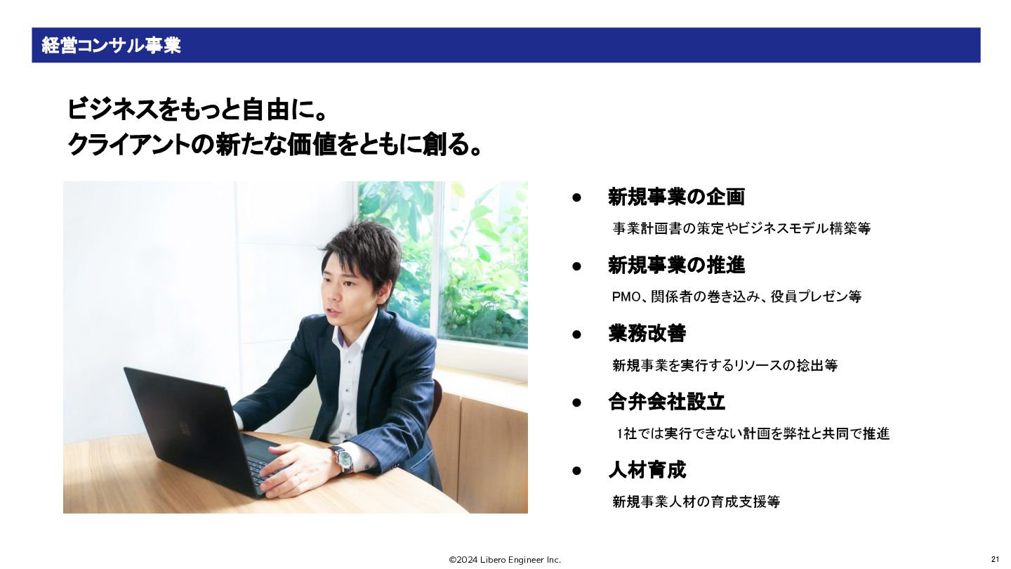 ©2024 Libero Engineer Inc. 21 ビジネスをもっと自由に。 クライアントの新たな価値をともに創る。
