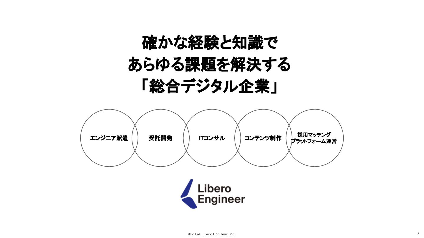 ©2024 Libero Engineer Inc. 5 確かな経験と知識で あらゆる課題を解決する 「総合デジタル企業」