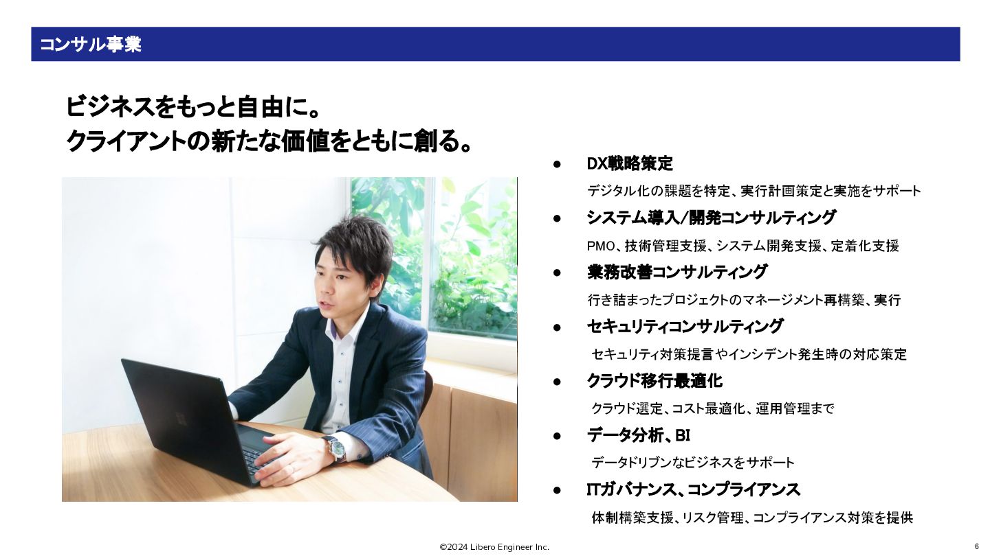 ©2024 Libero Engineer Inc. 6 ビジネスをもっと自由に。 クライアントの新たな価値をともに創る。