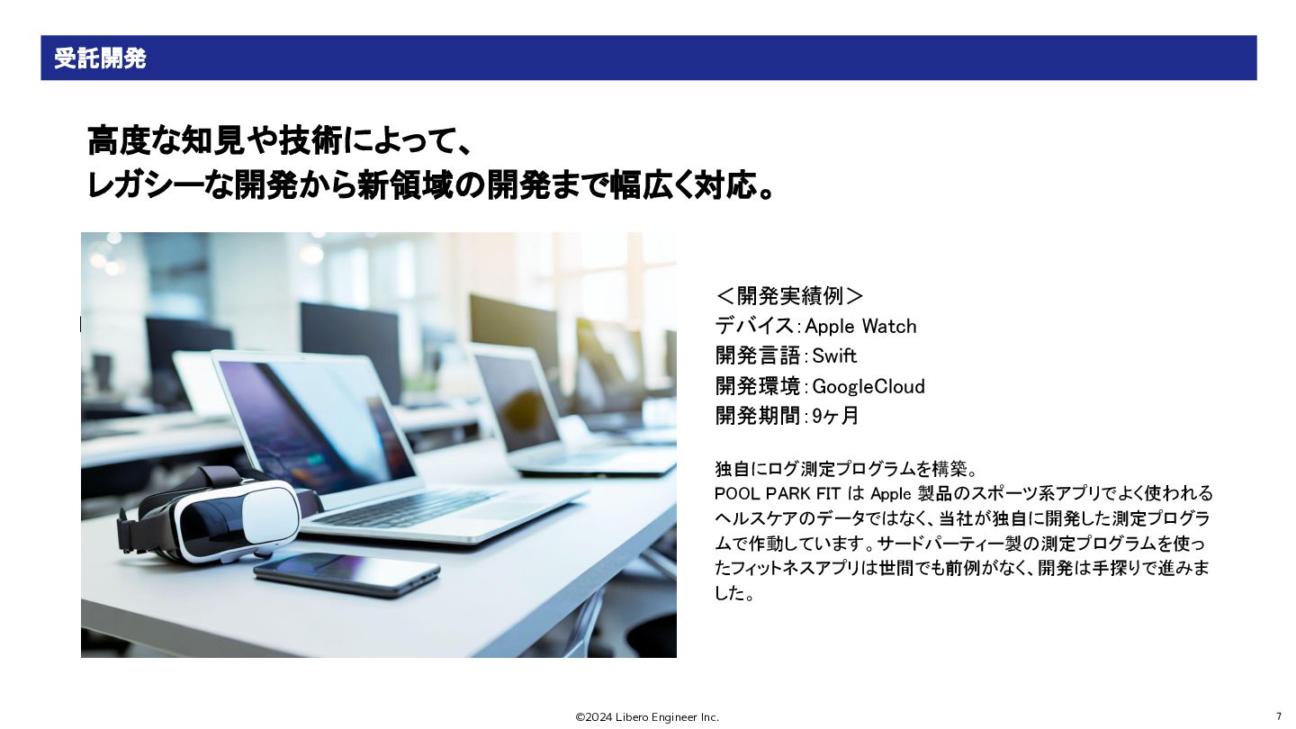 ©2024 Libero Engineer Inc. 7 高度な知見や技術によって、 レガシーな開発から新領域の開発まで幅広く対応。 POOL