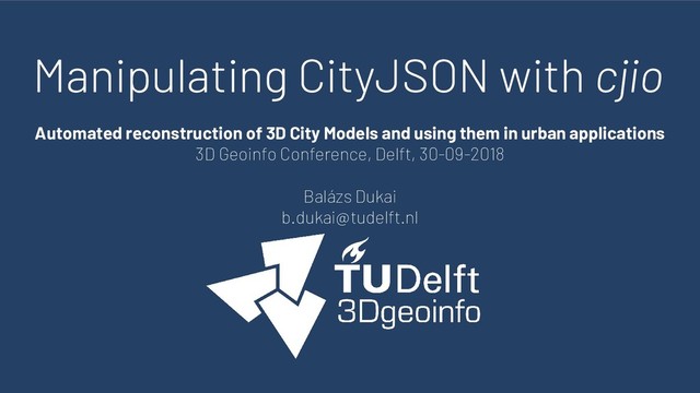 and using them in urban applications 3D Geoinfo Conference, Delft, 30-09-2018 Balázs Dukai