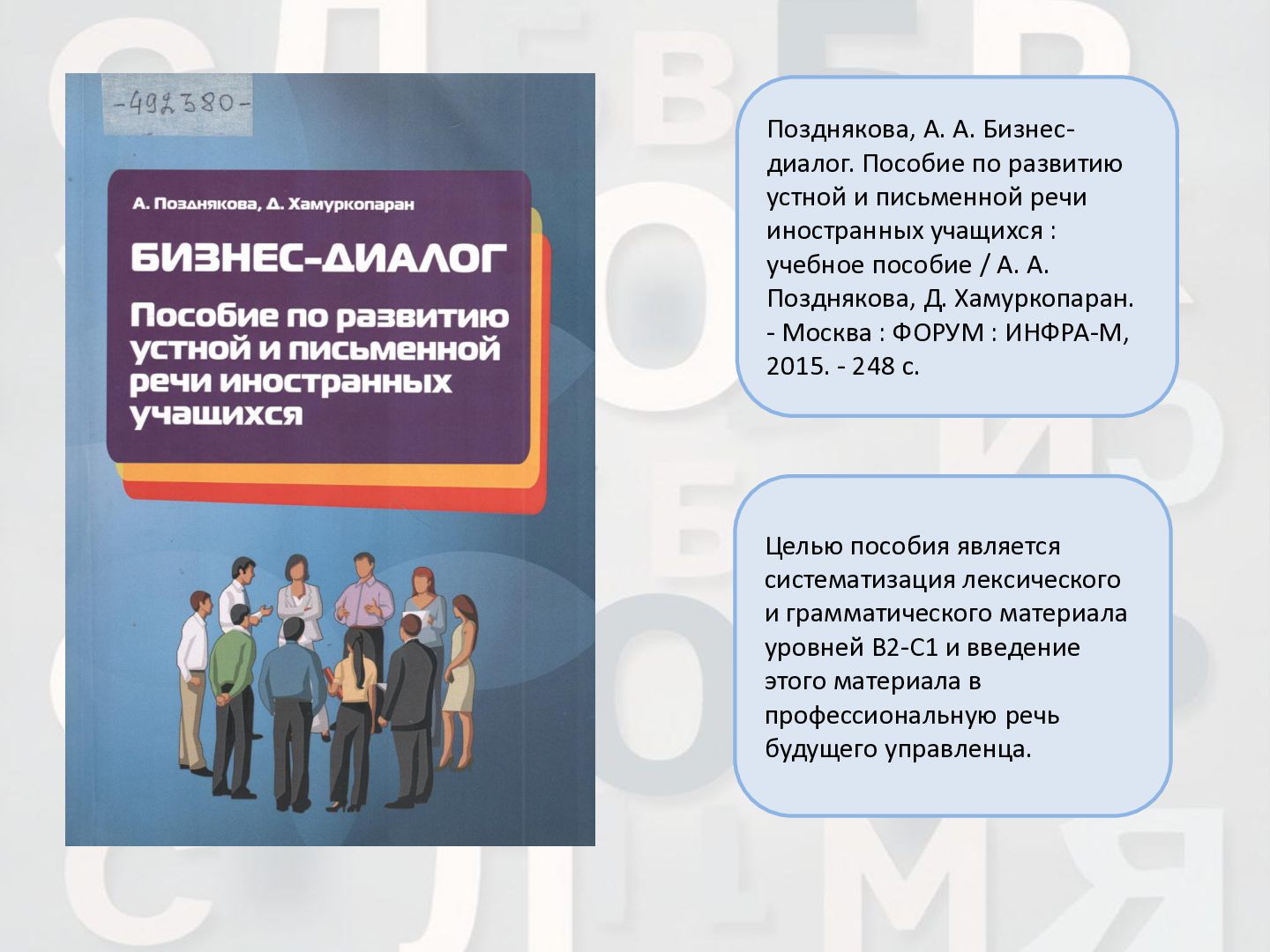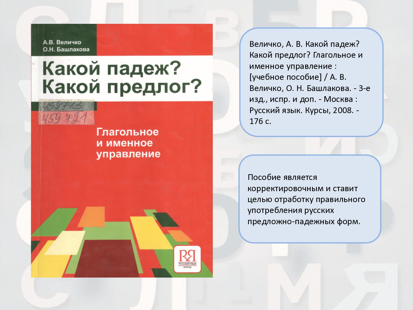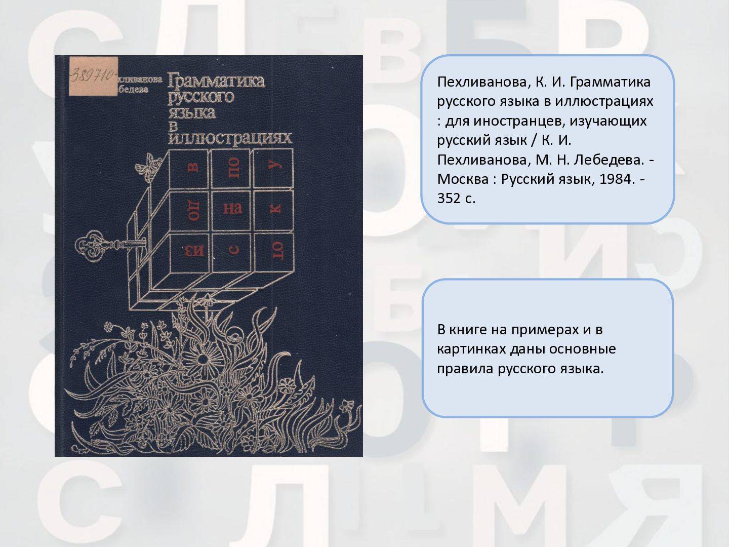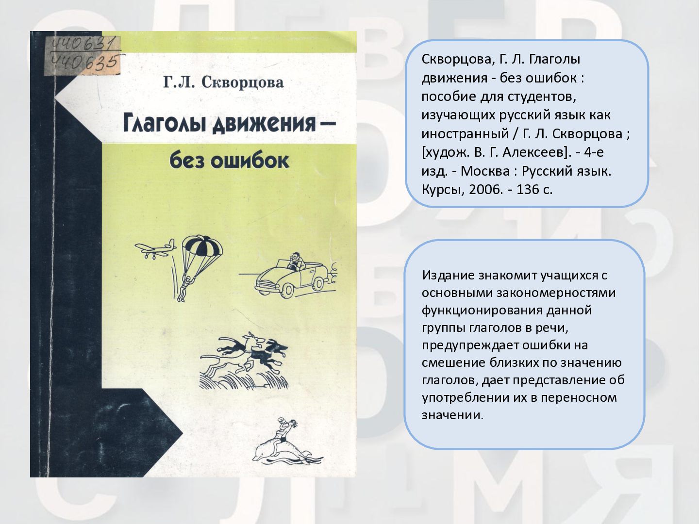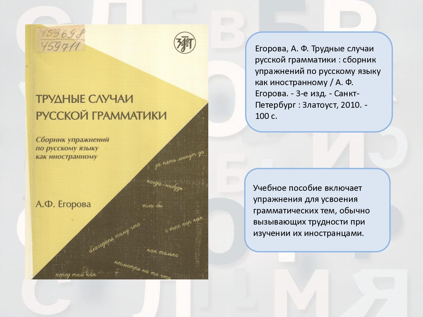 2 ч. : учебное пособие для иностранных студентов учреждений высшего образования по нефилологическим специальностям. Ч. 1 / А. И. Лазовская, Е. В. Тихоненко. - 2-е изд., испр. - Минск : РИВШ, 2013. - 282 c. Издание состоит из вводного фонетико-грамматического курса, где представлена информация о фонетической системе русского языка, русском алфавите, слогоделении, ударении, интонационных конструкциях, даны основы элементарной грамматики, и основного лексико- грамматического курса, который знакомит учащихся с предложно- падежной системой единственного числа имен существительных и личных местоимений, видовременной системой глагола, рядом синтаксических конструкций.