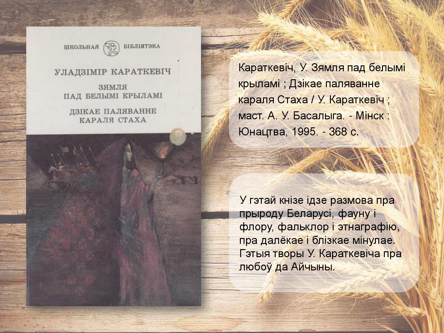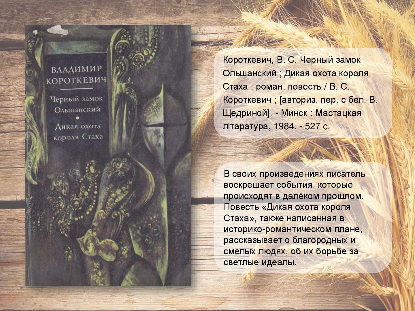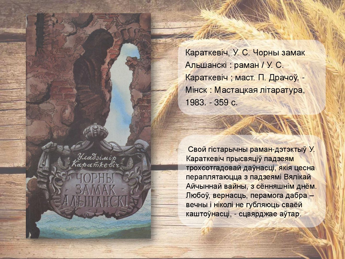 аб моцы дружбы, кахання, вернасці. Апавяданне «Кніганошы» - аб падзеях мінуўшчыны беларускай прыгранічнай вёскі. У п`есе «Званы Віцебска» раскрываюцца старонкі гісторыі беларускага народа, расказваецца пра гераічныя справы нашых продкаў, аб іх мужнасці і духоўнай прыгажосці. Караткевiч, У. Чазенiя : аповесць, п'еса, апавяданне / У. Караткевiч. - Мінск : Юнацтва, 1992. - 255 c.