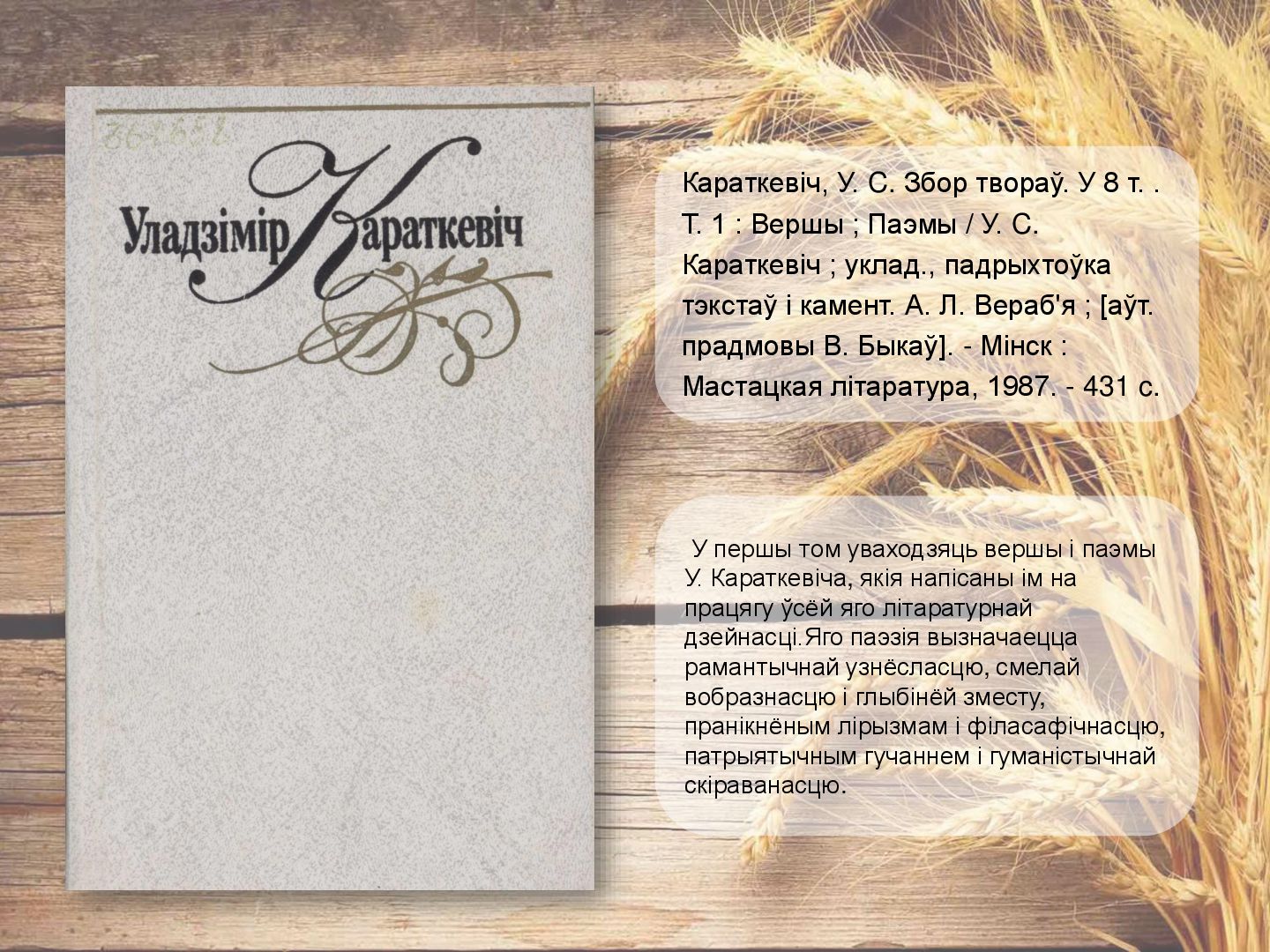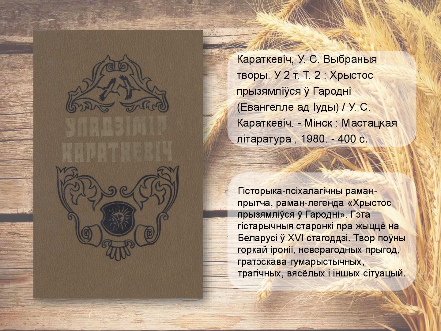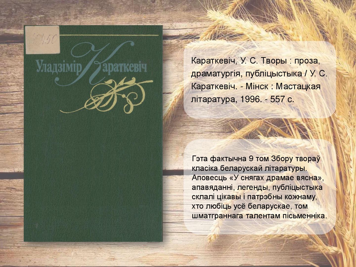 аб моцы дружбы, кахання, вернасці. Апавяданне «Кніганошы» - аб падзеях мінуўшчыны беларускай прыгранічнай вёскі. У п`есе «Званы Віцебска» раскрываюцца старонкі гісторыі беларускага народа, расказваецца пра гераічныя справы нашых продкаў, аб іх мужнасці і духоўнай прыгажосці. Караткевiч, У. Чазенiя : аповесць, п'еса, апавяданне / У. Караткевiч. - Мінск : Юнацтва, 1992. - 255 c.
