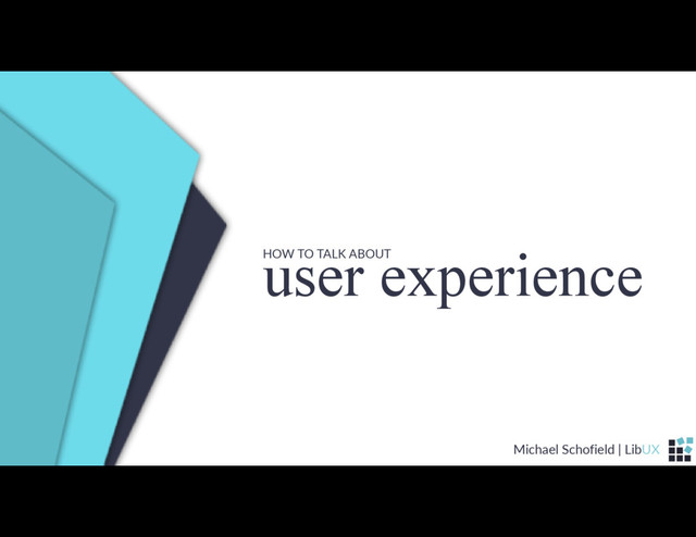 The status of library user experience design as a professional field is impacted by the absence of a single consistent definition of the area. How we talk about the user experience matters. So, in this 90 minute talk, we'll fix that.