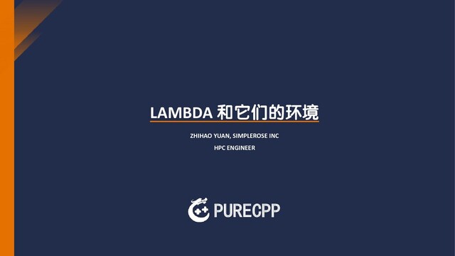 PURECPP LAMBDA 和它们的环境 ZHIHAO YUAN, SIMPLEROSE INC HPC ENGINEER