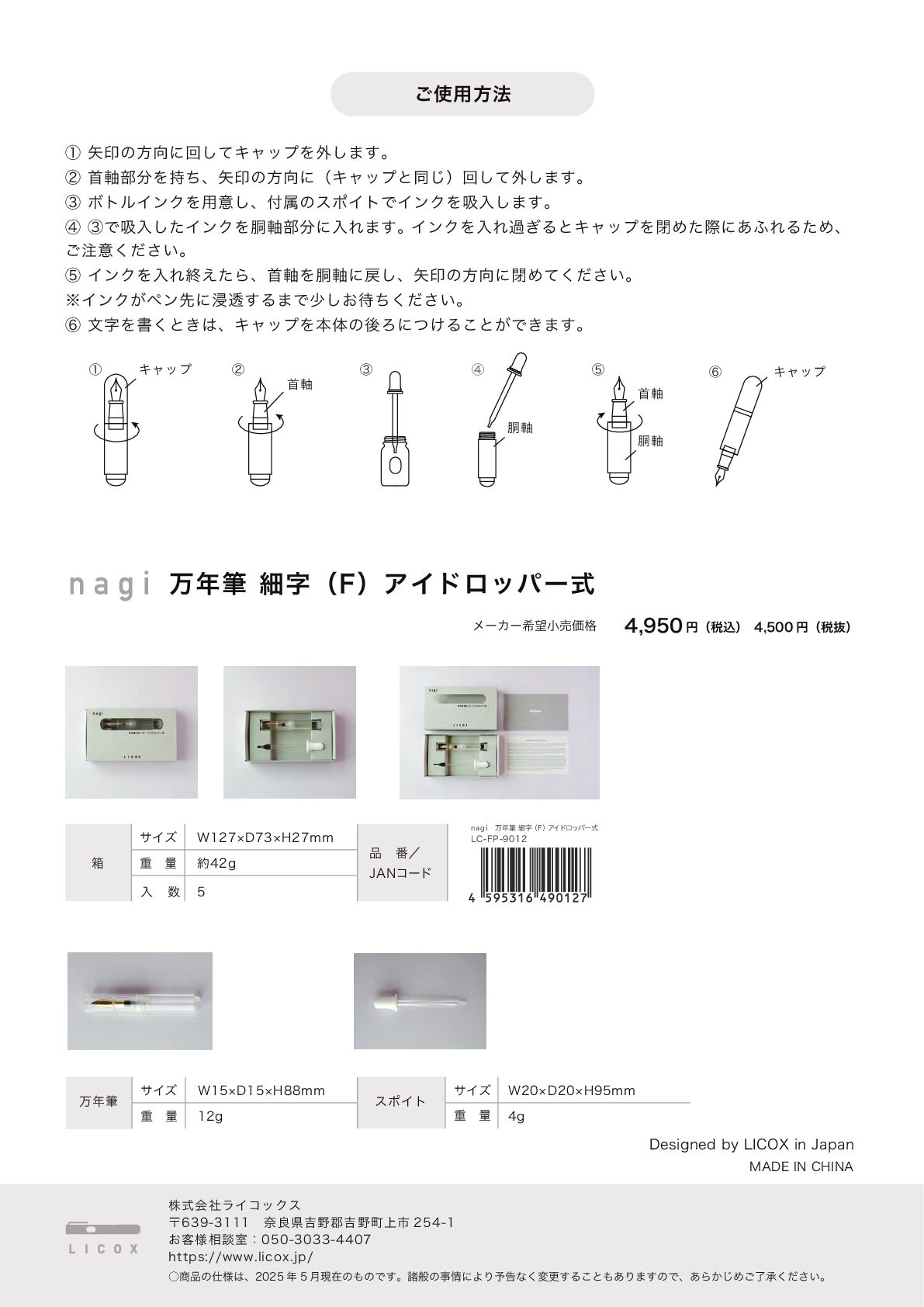 αΠζ 8º%º)NN H 8º%º)NN H ॏɹྔ εϙΠτ αΠζ ॏɹྔ ശ αΠζ 8º%º)NN H ॏɹྔ ɹ൪ʗ +"/ίʔυ ೖɹ ."%&*/$)*/" ສචࡉࣈʢ'ʣΞΠυϩούʔࣜ ϝʔΧʔرখചՁ֨ɹ ԁʢ੫ࠐʣ ɹ ԁʢ੫ൈʣ ͝༻ํ๏ ᶃҹͷํʹճͯ͠ΩϟοϓΛ֎͠·͢ɻ ᶄट࣠෦Λ࣋ͪɺҹͷํʹʢΩϟοϓͱಉ͡ʣճͯ͠֎͠·͢ɻ ᶅϘτϧΠϯΫΛ༻ҙ͠ɺଐͷεϙΠτͰΠϯΫΛٵೖ͠·͢ɻ ᶆᶅͰٵೖͨ͠ΠϯΫΛ࣠෦ʹೖΕ·͢ɻ ΠϯΫΛೖΕա͗ΔͱΩϟοϓΛดΊͨࡍʹ͋;ΕΔͨΊɺ ͝ҙ͍ͩ͘͞ɻ ᶇΠϯΫΛೖΕऴ͑ͨΒɺट࣠Λ࣠ʹ͠ɺҹͷํʹดΊ͍ͯͩ͘͞ɻ ˞ΠϯΫ͕ϖϯઌʹਁಁ͢Δ·Ͱগ͓͍ͪͩ͘͠͞ɻ ᶈจࣈΛॻ͘ͱ͖ɺΩϟοϓΛຊମͷޙΖʹ͚ͭΔ͜ͱ͕Ͱ͖·͢ɻ ᶃ ट࣠ ᶄ ᶅ ᶇ ट࣠ ࣠ ᶆ ࣠ ᶈ Ωϟοϓ Ωϟοϓ OBHJɹສචࡉࣈ ʢ'ʣ ΞΠυϩούʔࣜ -$'1 %FTJHOFECZ-*$09JO+BQBO