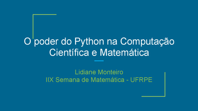 Python é linguagem de programação alto nível, gratuita e open source que fornece ferramentas para resolver diversos problemas voltados para ciência, engenharia, estatística e computação. Python pode ser utilizado em ambiente de pesquisa, área científica ou até mesmo como ferramentas de ensino da matemática através da manipulação de vetores, matrizes, plotagem de gráficos e álgebra linear. O poder do Python na computação científica e matemática também podem ser evidenciados por seu potencial e alternativa viável ao Fortran e Matlab.