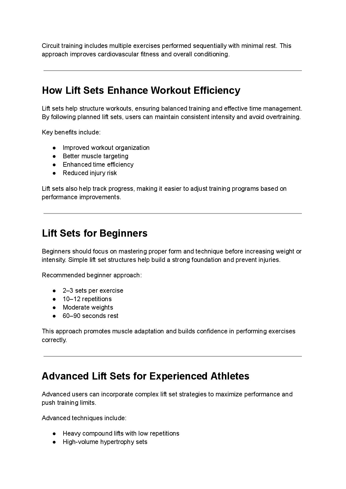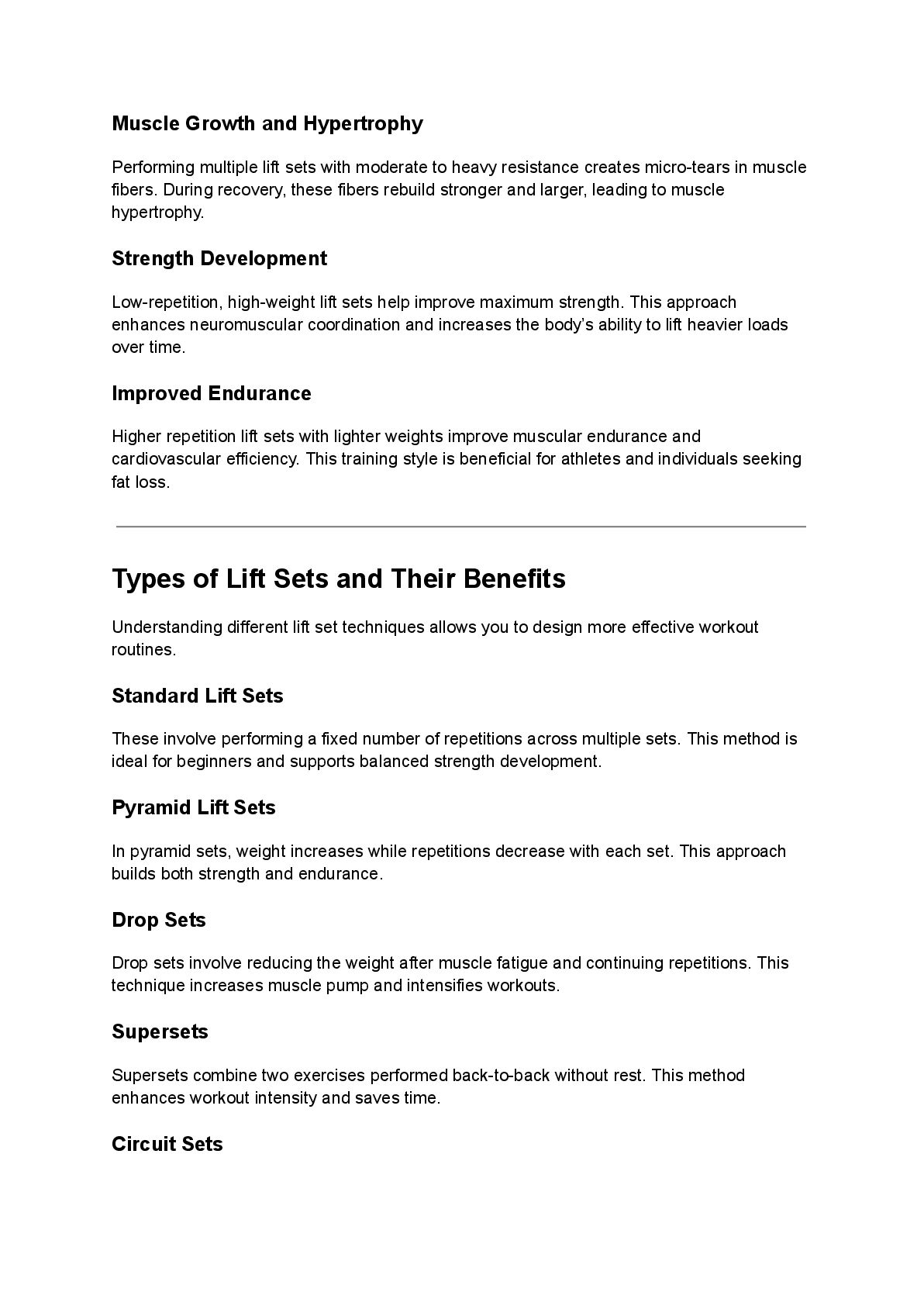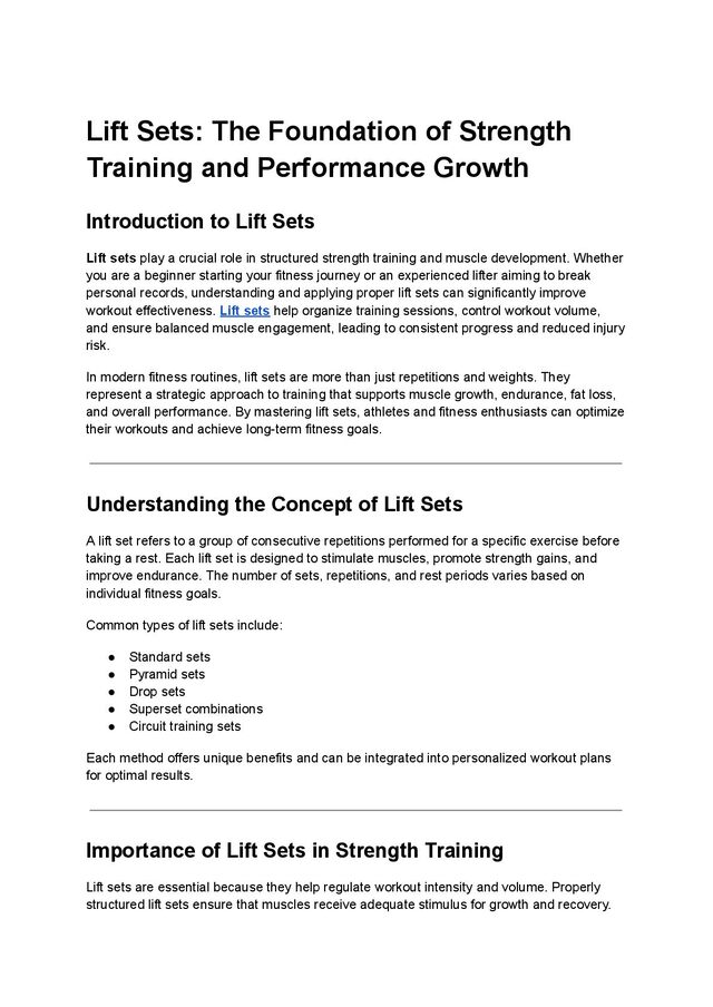 Lift sets play a crucial role in structured strength training and muscle development. Whether you are a beginner starting your fitness journey or an experienced lifter aiming to break personal records, understanding and applying proper lift sets can significantly improve workout effectiveness. Lift sets help organize training sessions, control workout volume, and ensure balanced muscle engagement, leading to consistent progress and reduced injury risk.