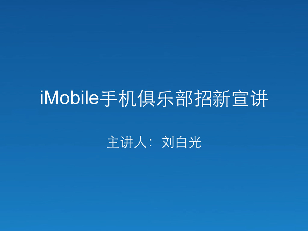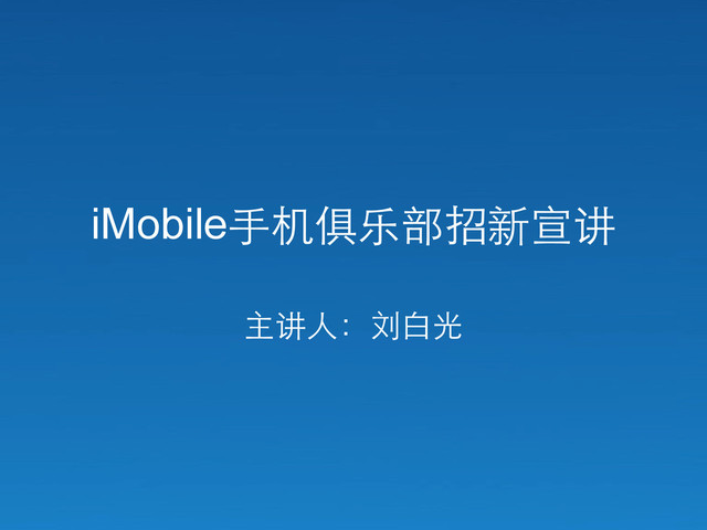 iMobile⼿手机俱乐部招新宣讲 主讲⼈人:刘⽩白光