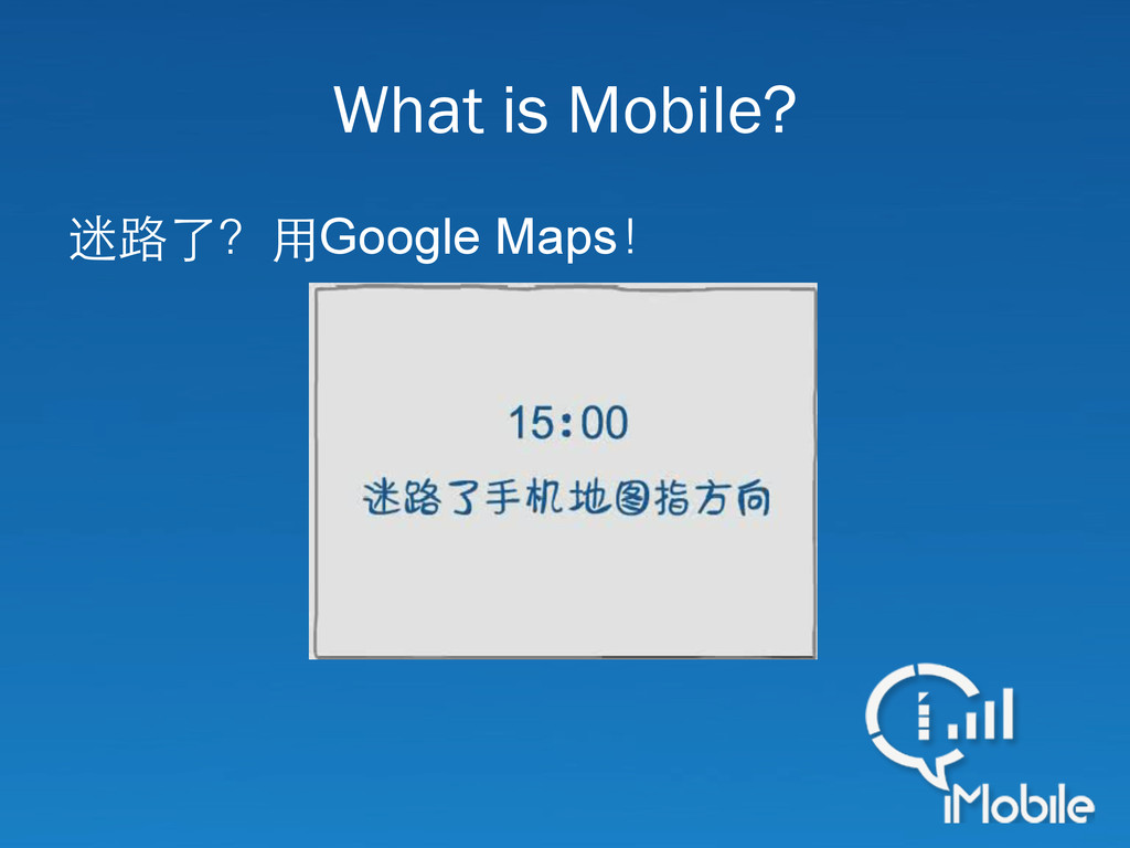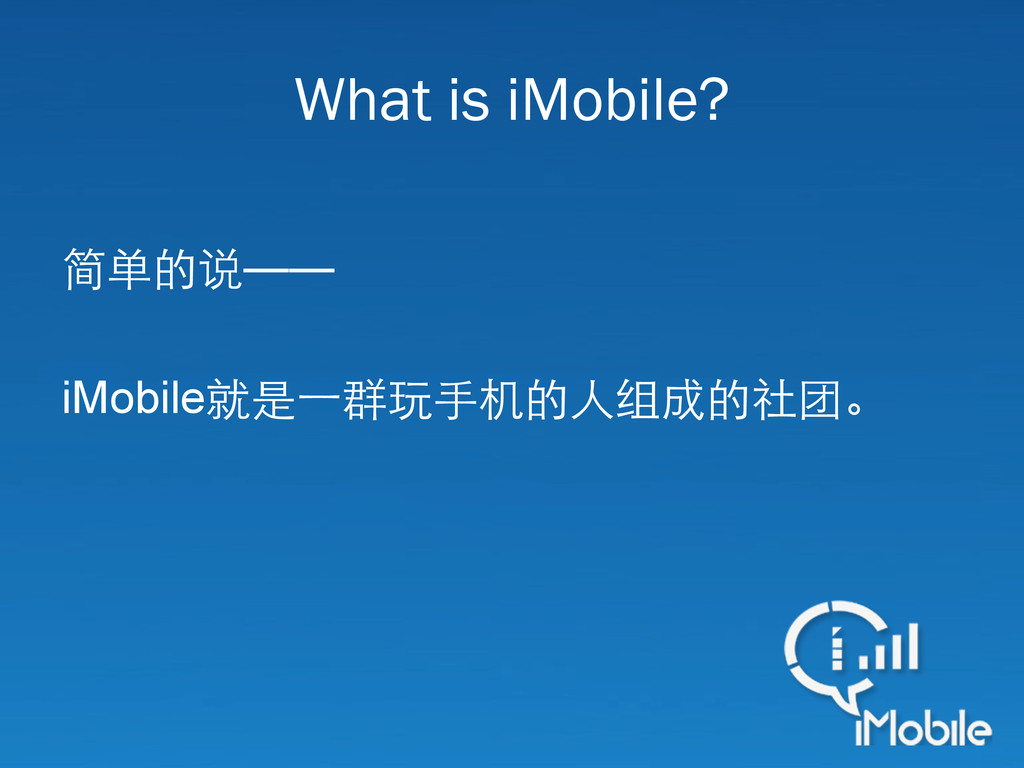 What is iMobile? 简单的说—— iMobile就是⼀一群玩⼿手机的⼈人组成的社团。