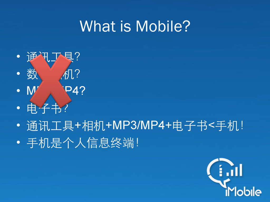 What is Mobile? • 通讯⼯工具? • 数码相机? • MP3/MP4? •