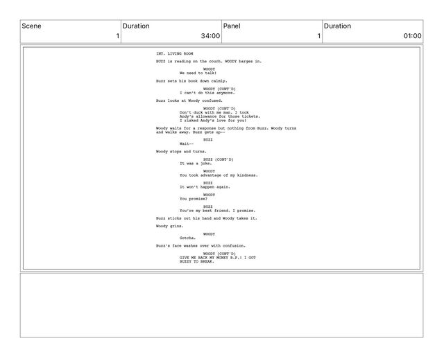 Scene 1 Duration 34 00 Panel 1 Duration 01 00