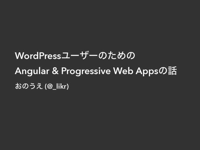 WordPressϢʔβʔͷͨΊͷ Angular & Progressive Web Appsͷ ͓ͷ͏͑ (@_likr)