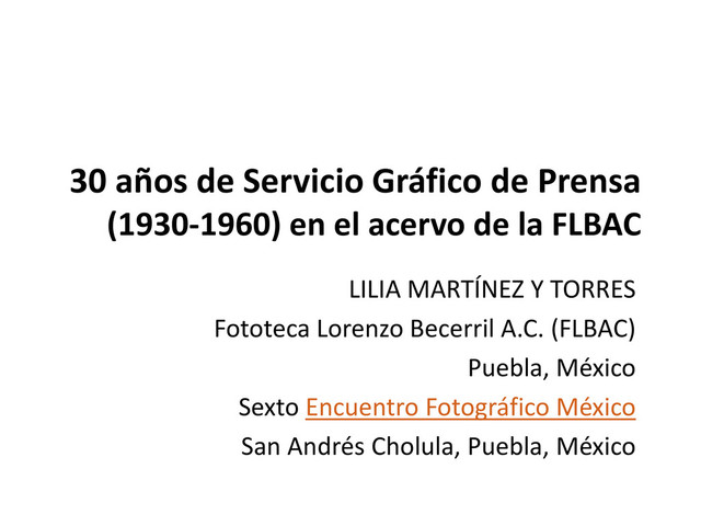 acervo de la FLBAC LILIA MARTÍNEZ Y TORRES Fototeca Lorenzo Becerril A.C. (FLBAC) Puebla, México Sexto Encuentro Fotográfico México San Andrés Cholula, Puebla, México
