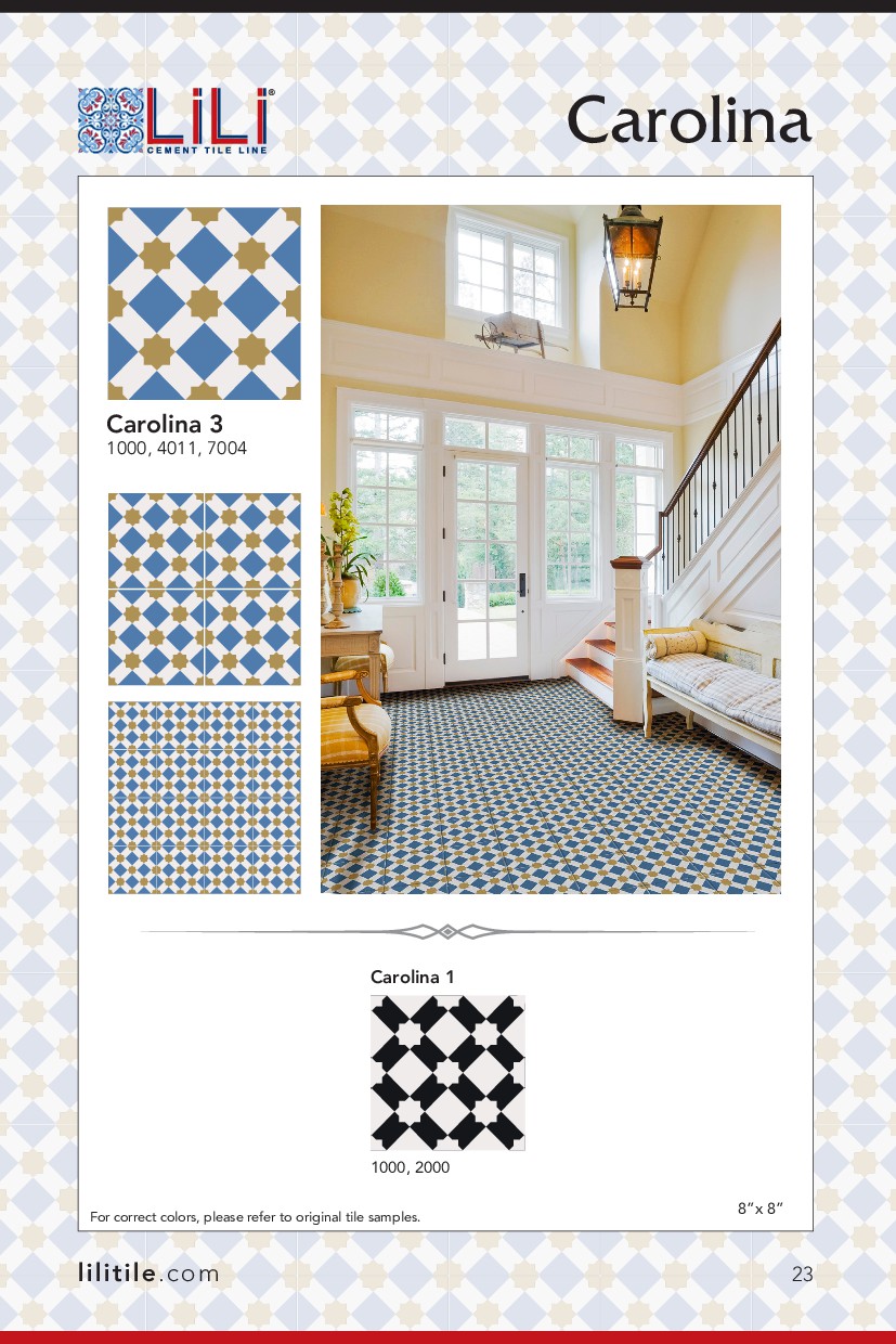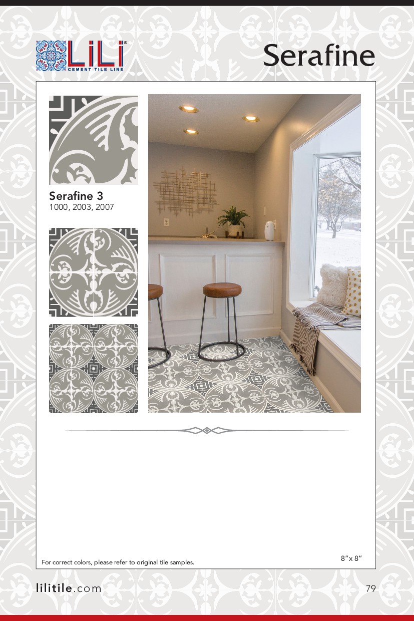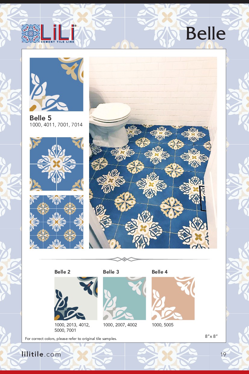 2007, 6002 Sofia 8 1010, 2000, 6004 Sofia 3 1000, 2005, 4012, 5000, 7000 Sofia 85 lilitile.com 8”x 8” For correct colors, please refer to original tile samples.