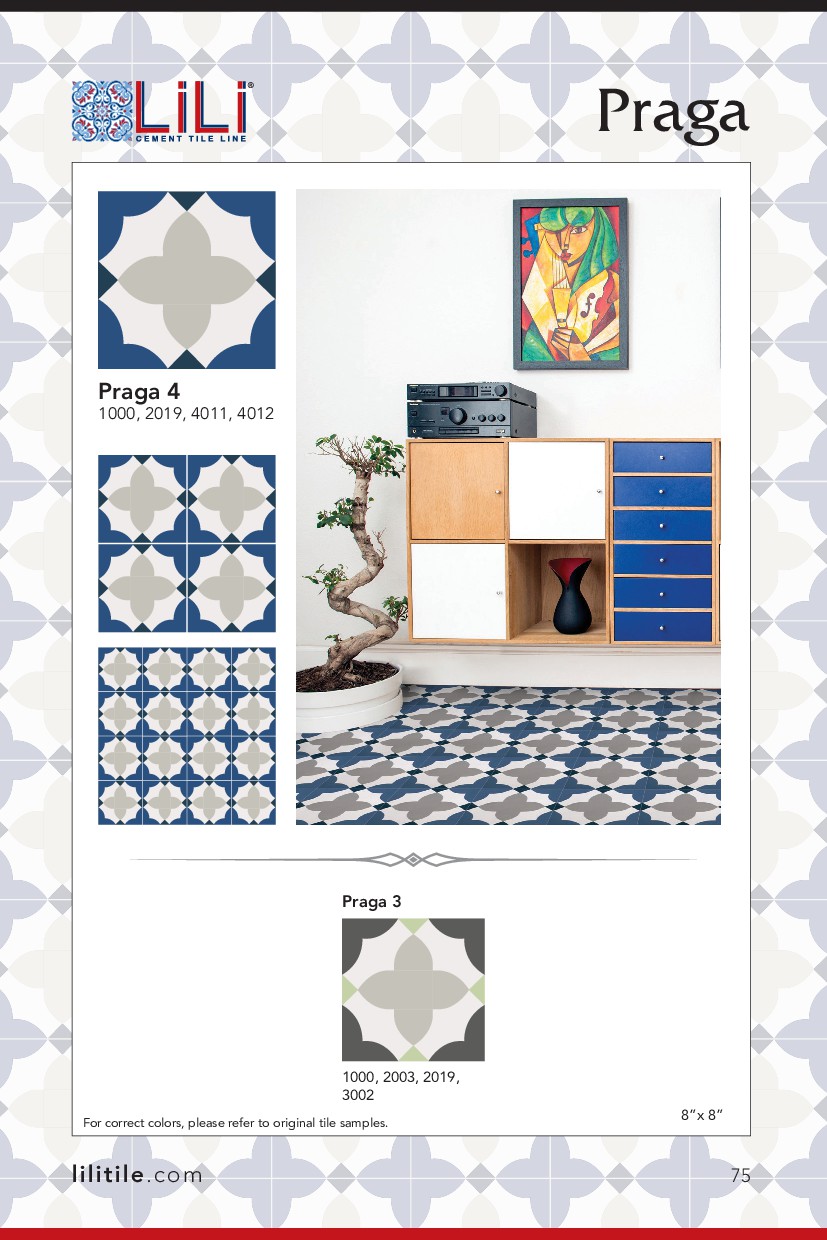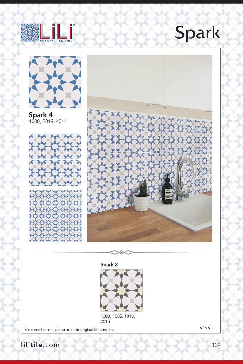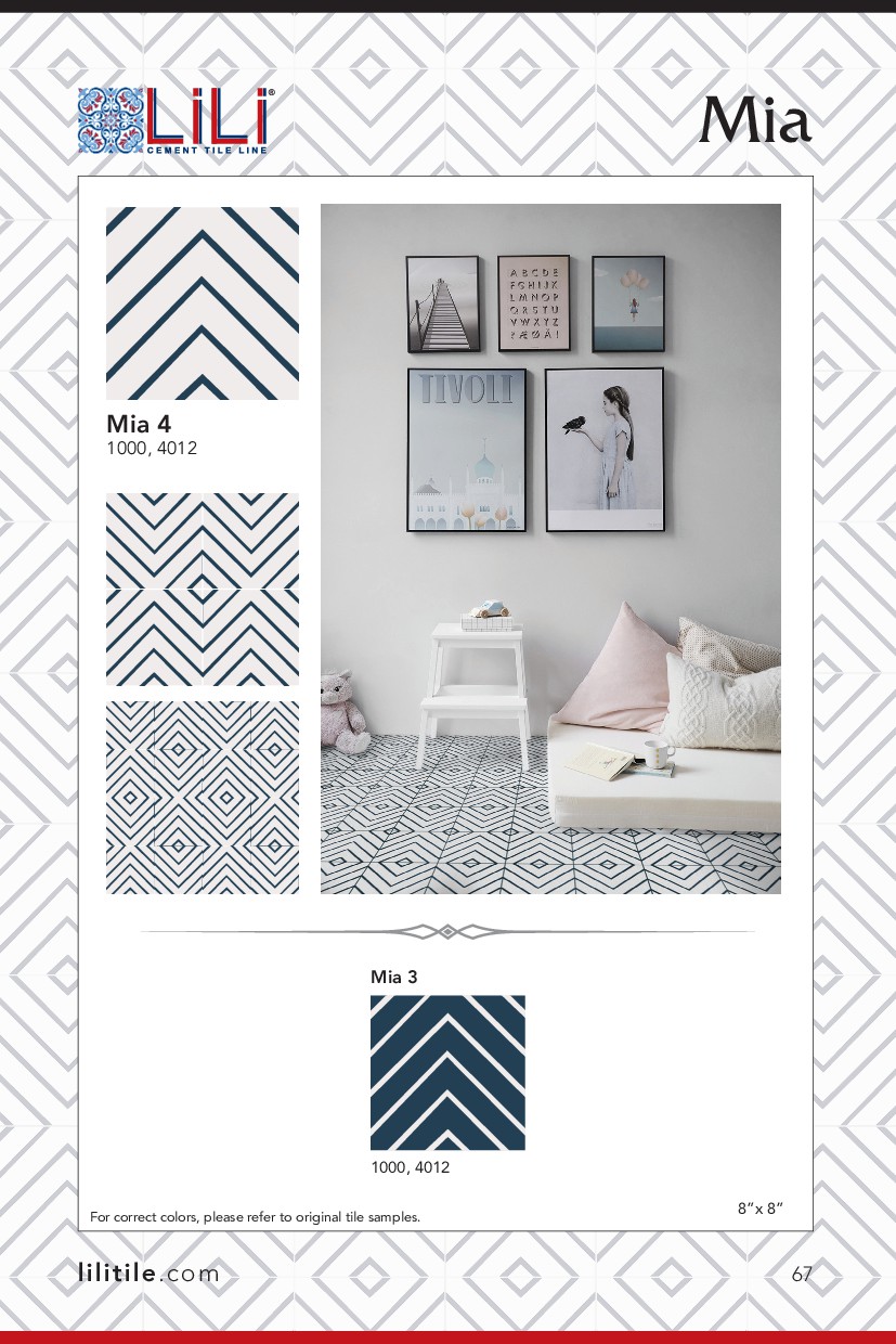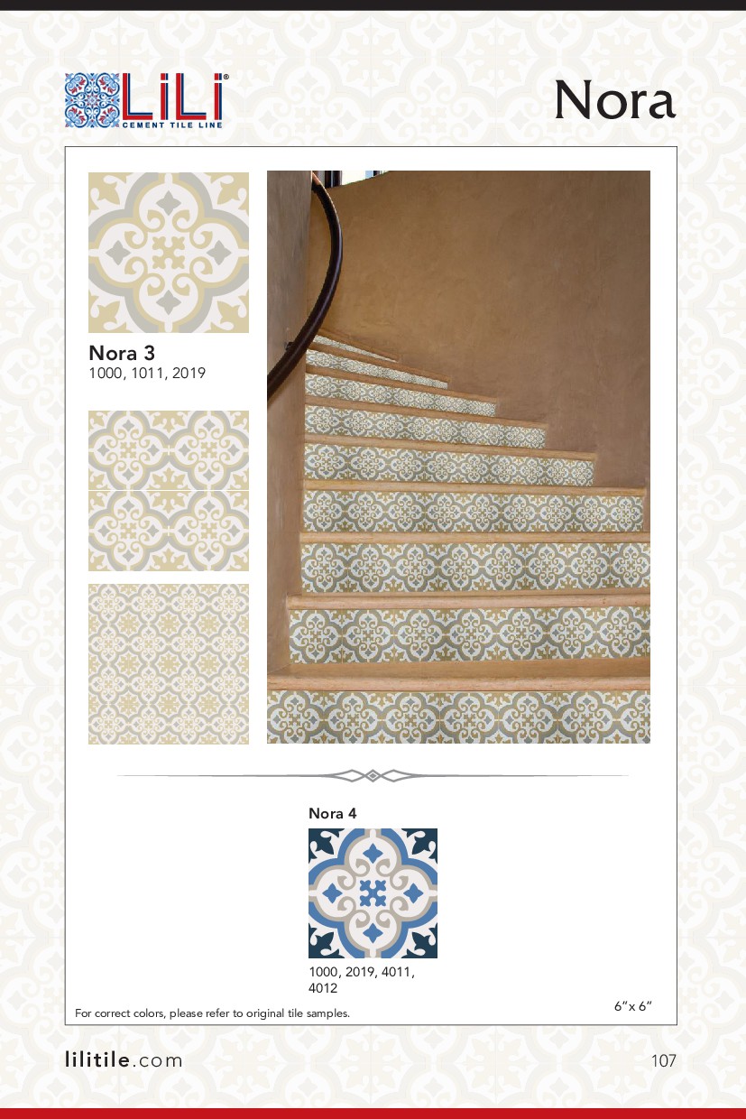 2007, 6002 Sofia 8 1010, 2000, 6004 Sofia 3 1000, 2005, 4012, 5000, 7000 Sofia 85 lilitile.com 8”x 8” For correct colors, please refer to original tile samples.