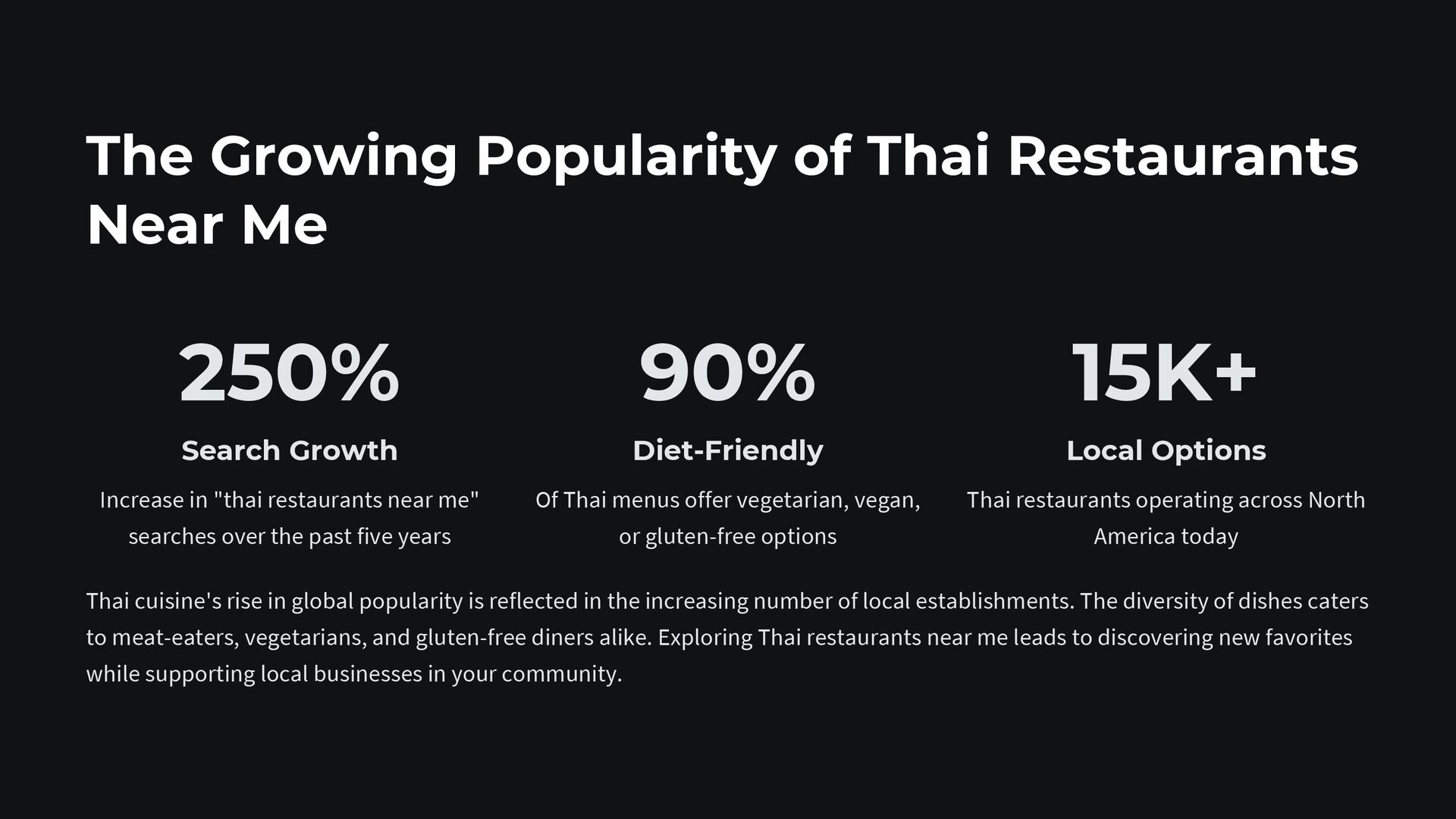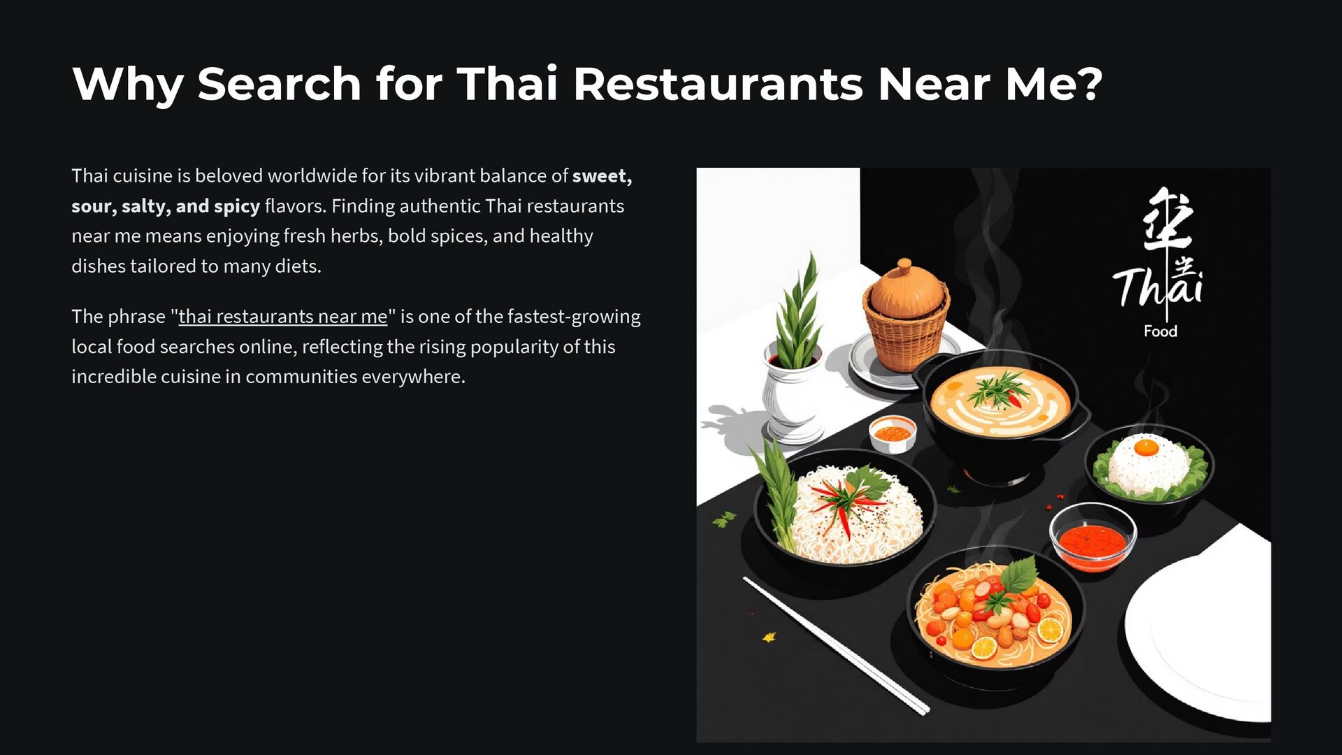 The inviting atmosphere and friendly service at these restaurants make them perfect for family meals, date nights, or casual dining with friends. Don't miss out on the opportunity to enjoy the rich tastes of Thailand, just around the corner. Next time you're searching for a delicious meal, try one of the many Thai Restaurants Near Me to enjoy an authentic and unforgettable culinary experience.
