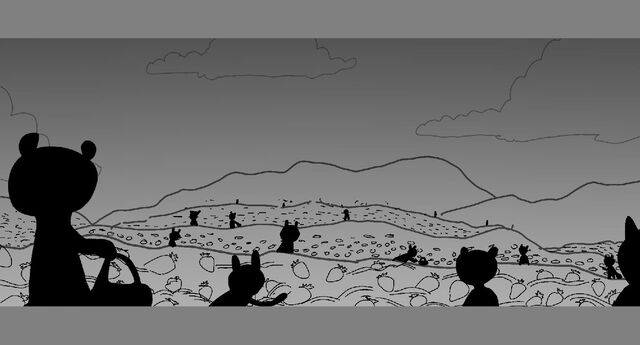 A rotten strawberry disrupts the society of tiny creatures.