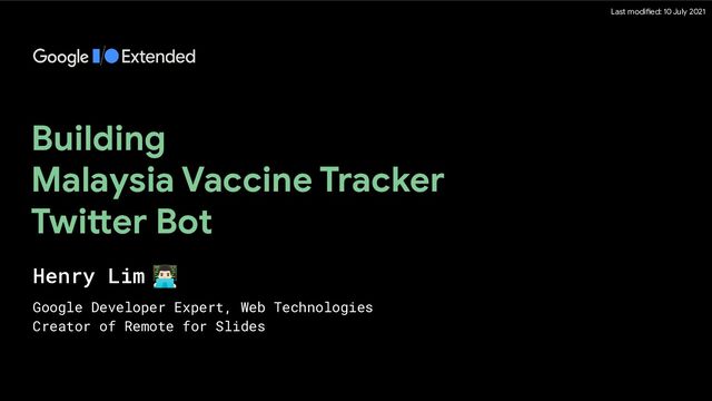 In this session, you will learn how to make the Malaysia vaccination data easier to understand by building a Twitter bot (Malaysia Vaccine Tracker, twitter.com/MYVaccineCount) with the help of some cool Google technologies like Google Cloud Vision API, Google Sheets API, Firebase and more.