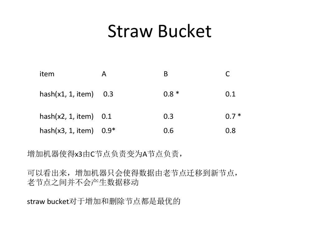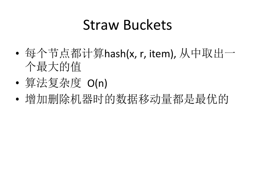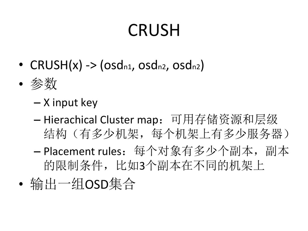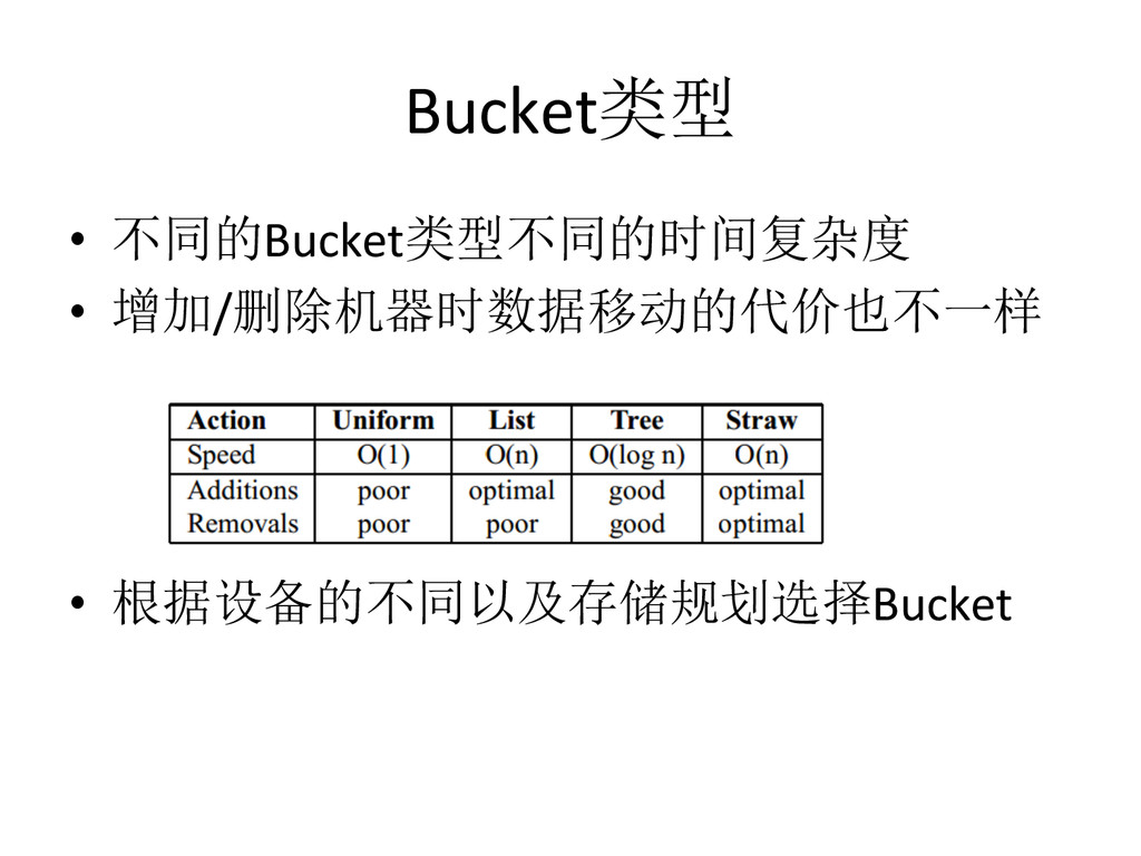 Data – hdp://ceph.com/papers/weil-‐crush-‐sc06.pdf • Replicaeon under scalable hashing: A family of algorithms for scalable decentralized data distribueon – hdp://www.ssrc.ucsc.edu/Papers/honicky-‐ ipdps04.pdf • A fast algorithm for online placement and reorganizaeon of replicated data – hdp://users.soe.ucsc.edu/~elm/Papers/ipdps03.pdf