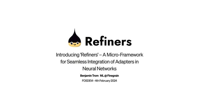 To address this challenge, we've developed 'Refiners' – a streamlined micro-framework built on top of PyTorch, one of the most popular machine learning frameworks. The goal of Refiners is to serve as a comprehensive collection of foundational models and their respective adapters. Its primary design pattern sets it apart: envisioning all neural networks as a 'Chain' of primary layers, neatly nested one after the other. Furthermore, we've integrated the 'Context API,' a feature that allows the implementation of complex models, including those that don't follow a simple linear structure. By doing so, Refiners simplifies the integration of new adapters, making it easier for developers to build and enhance neural networks without the need to overhaul their entire code base each time. This approach saves time and opens up new possibilities for innovation in AI development.